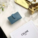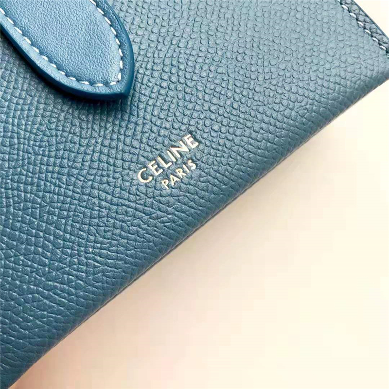10B693 Celine赛琳卡包 粒面小牛皮 Celine风琴褶卡包 雾霾蓝