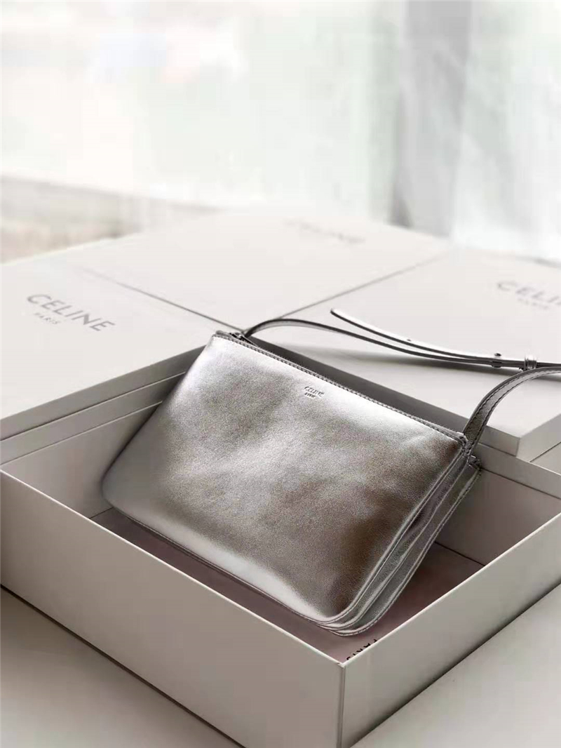 • 187603 Celine女包 Trio 小号 光滑小羊皮 Celine肩背包 银色