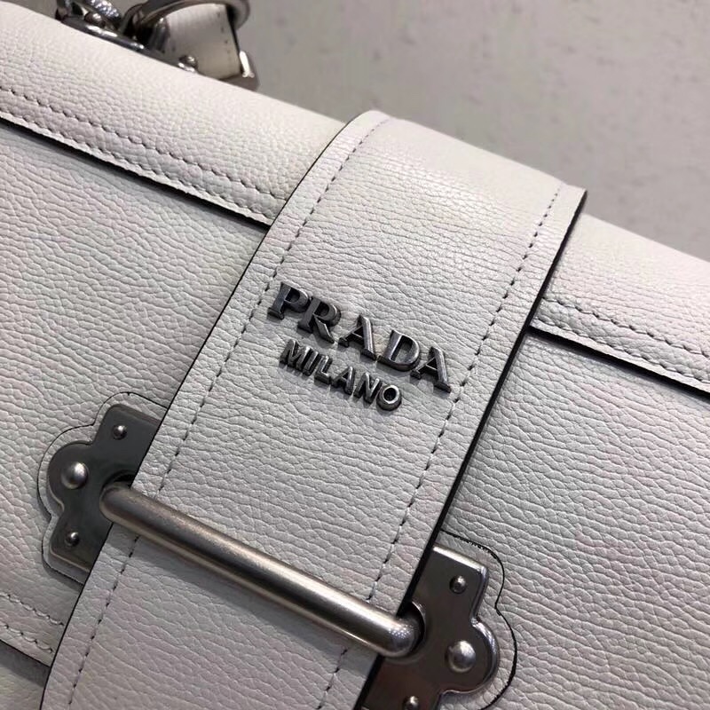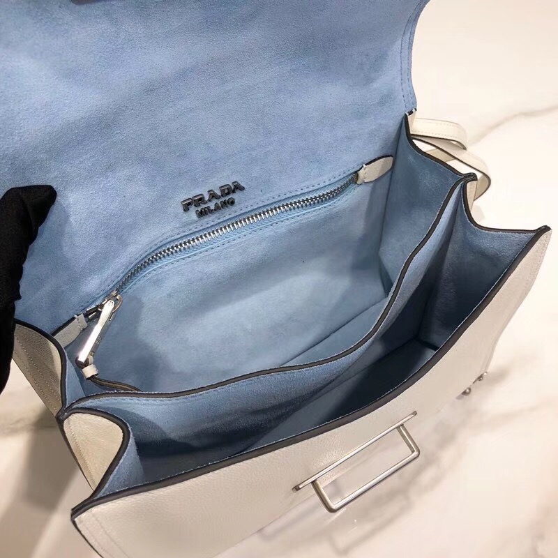 - 1BA158 Prada普拉达 prada cahier 小牛皮 翻盖带扣 单肩包 白色