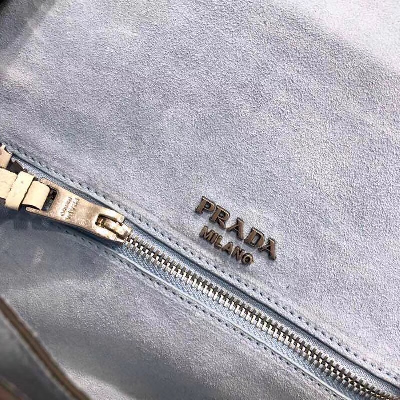 - 详细介绍:Prada Cahier 手提包采用箱型设计,四角银质硬件如画龙点睛,增添优雅魅力。皮革手柄可作为单肩包使用。翻盖和带扣开合与精致的蓝色小山羊皮衬里相得益彰。
