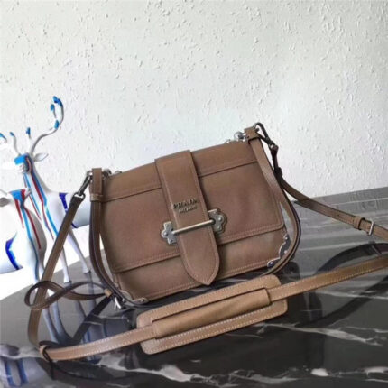 1BA158 Prada普拉达 prada cahier 小牛皮 翻盖带扣 单肩包 白色