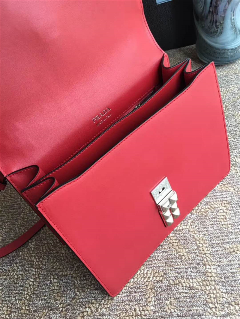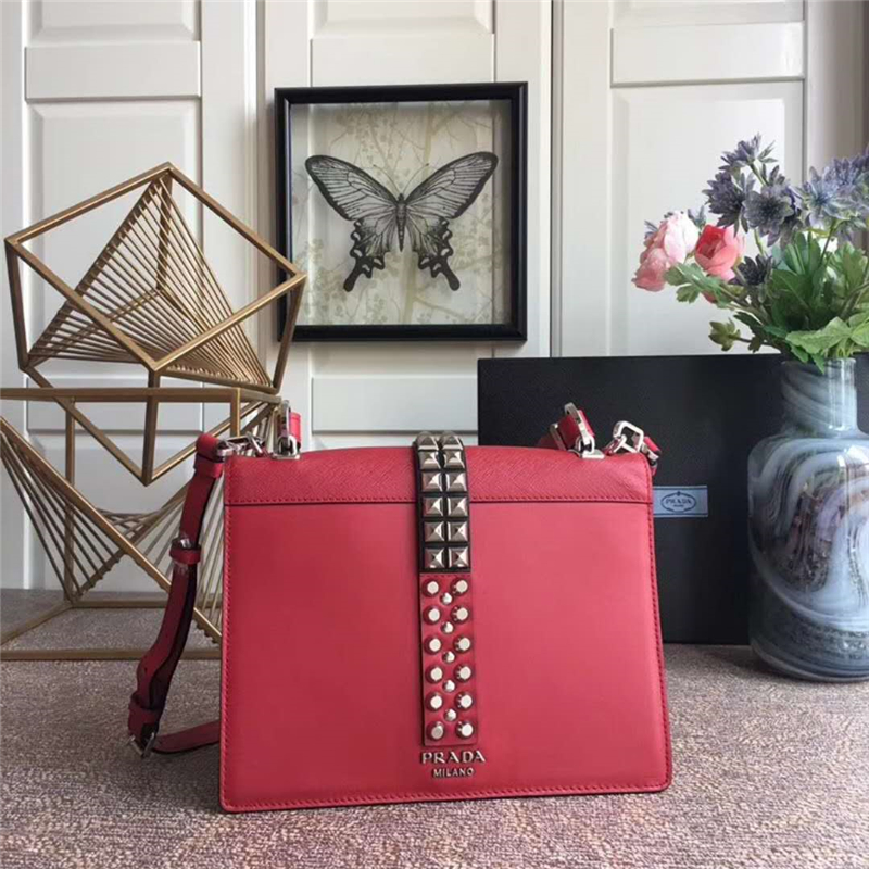 - 详细介绍:2018年最新款式1BA179,采用进口小牛皮和Saffiana皮革,铆钉皮革手柄,可拆卸的皮革肩带,抛光的镀钢金属五金,翻盖与推锁开合,两条肩带可拆卸,实用性强,又来一款爆款,165代工码
