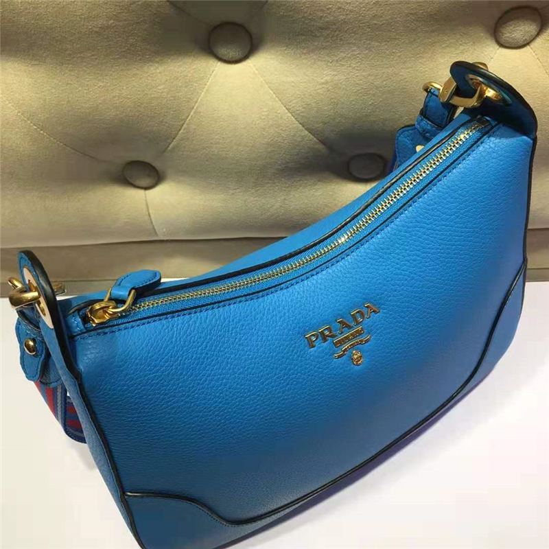 1BC052 Prada女包 彩色宽肩带 普拉达饺子包 Prada单肩包 蓝色