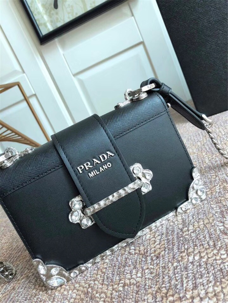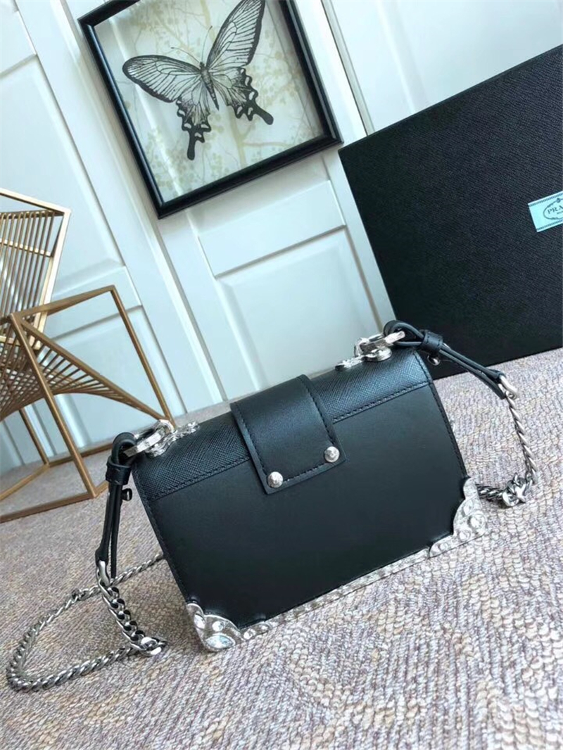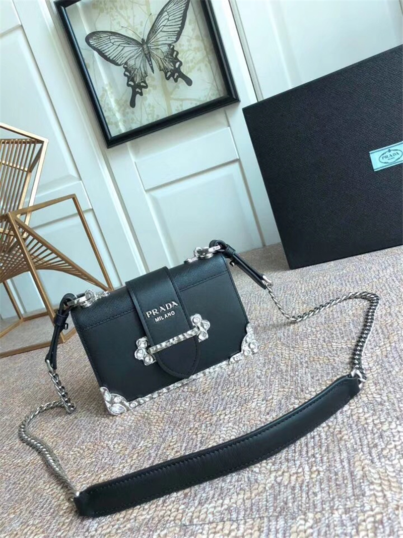 - 1BD018 Prada单肩包 顶级宝石五金 时尚女士休闲包 Prada女包 进口牛皮 黑色