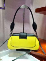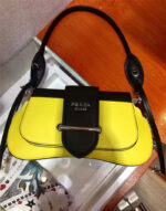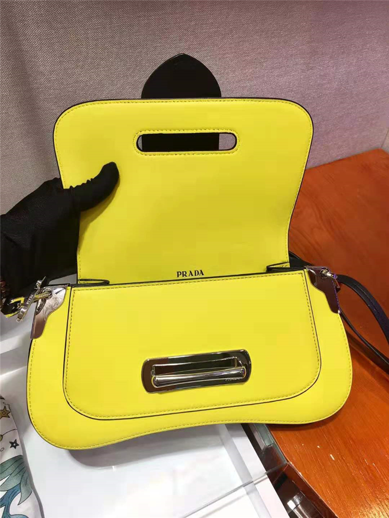 1BD168 Prada Sidonie女包 小牛皮 拼色翻盖 皮革单肩包 柠檬黄