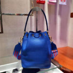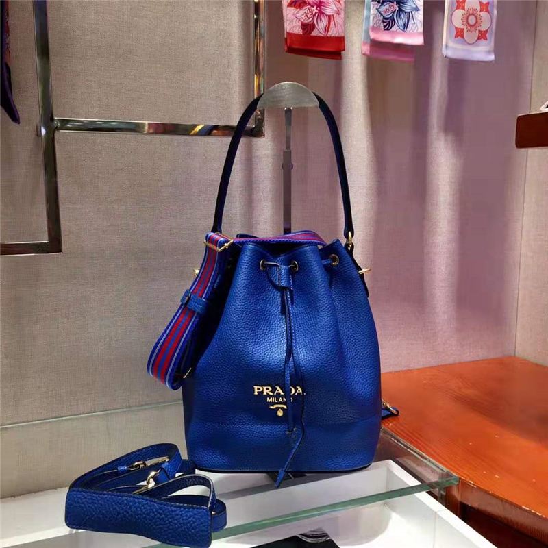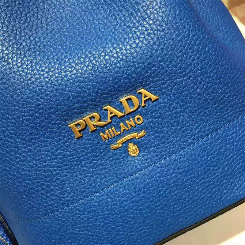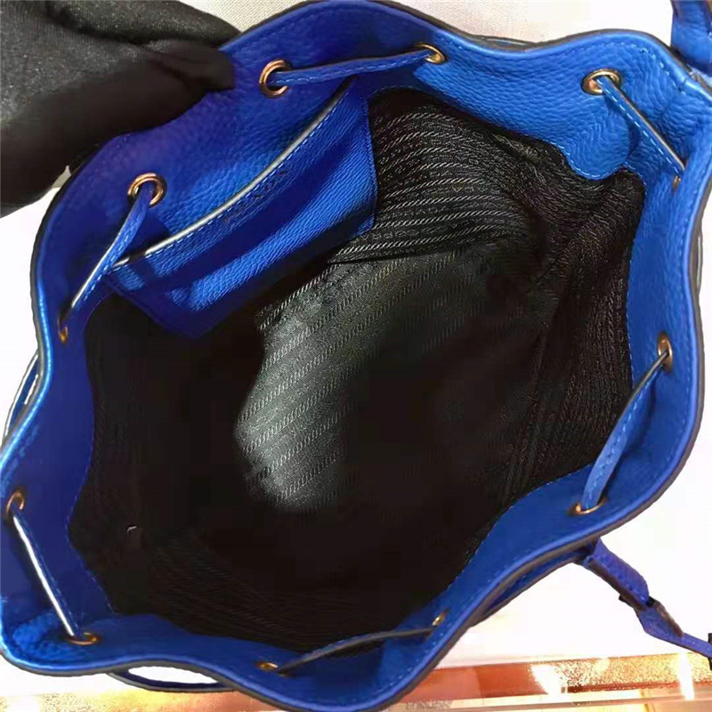 - 1BE018 Prada女包 小牛皮鹿皮纹 普拉达手提包 抽绳水桶包 Prada肩包 蓝色