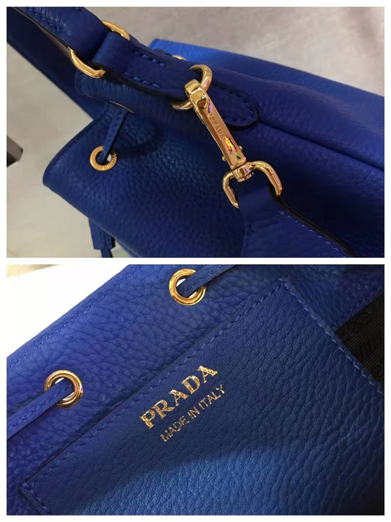 1BE018 Prada女包 小牛皮鹿皮纹 普拉达手提包 抽绳水桶包 Prada肩包 蓝色