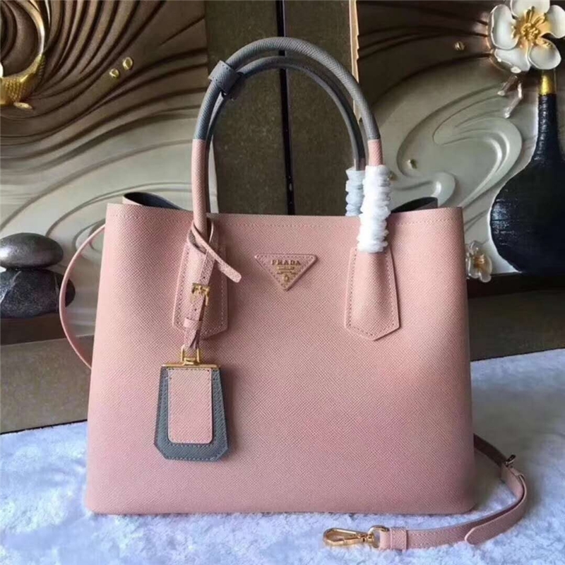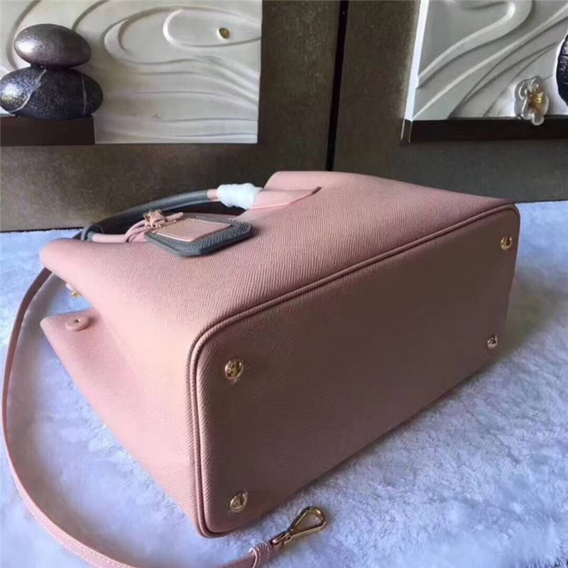 1BG775 Prada普拉达 双手柄 新款拼色 名媛手提包 粉色