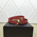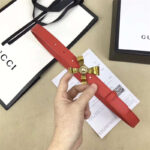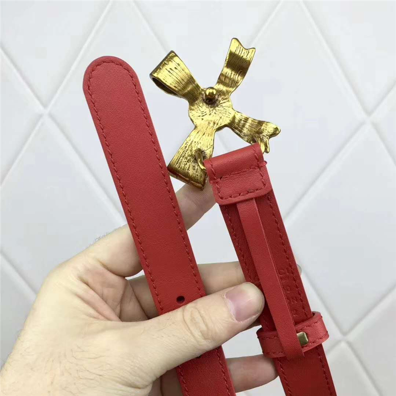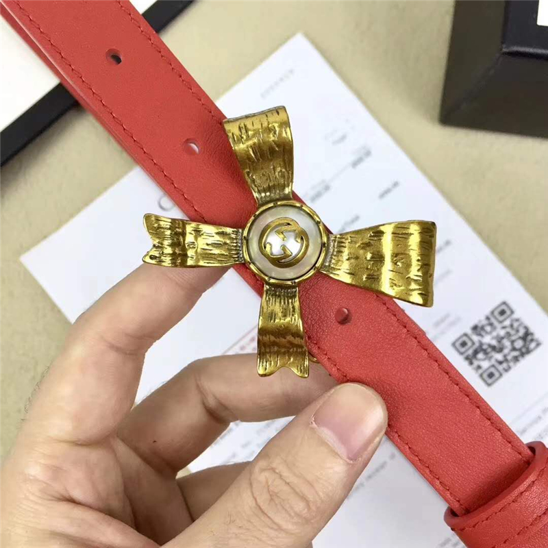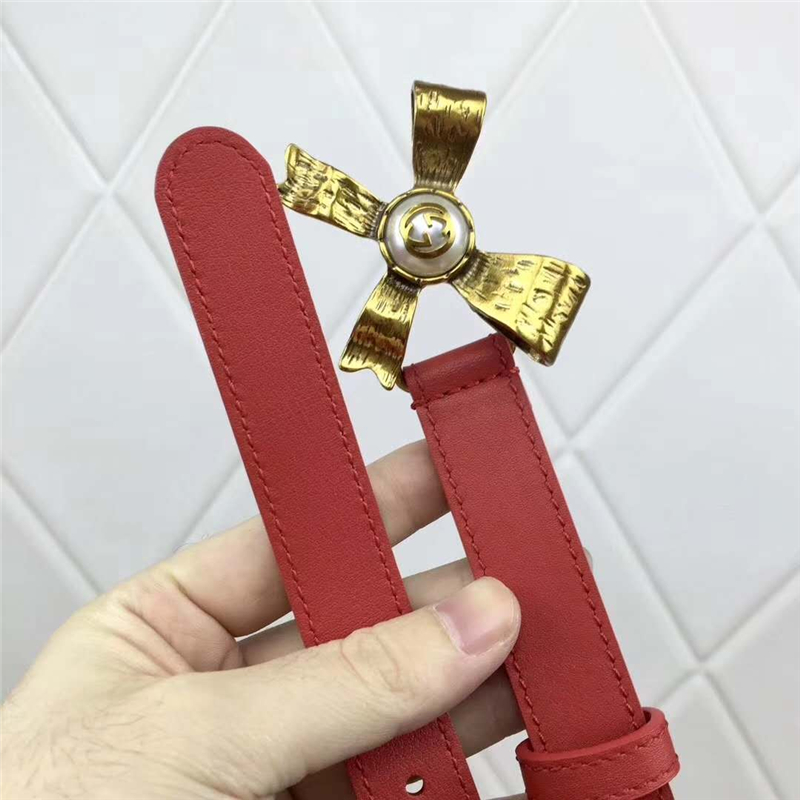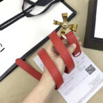 - 2008114899 Gucci 2017年新款 牛皮 金属蝴蝶结饰钉 双G带扣 女式皮带 红色