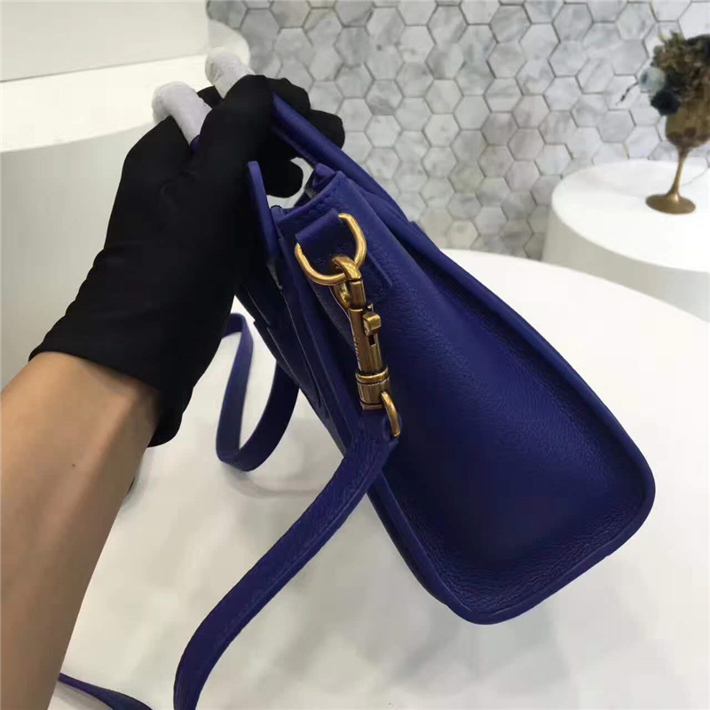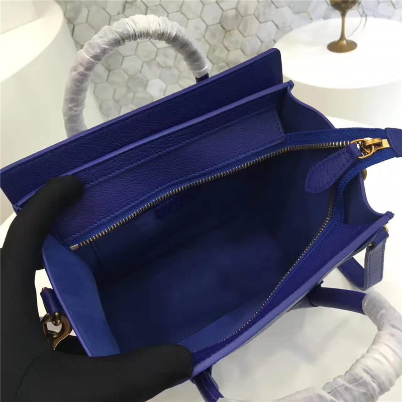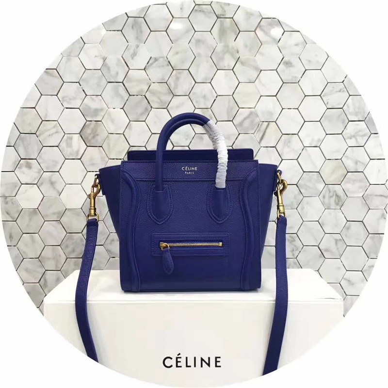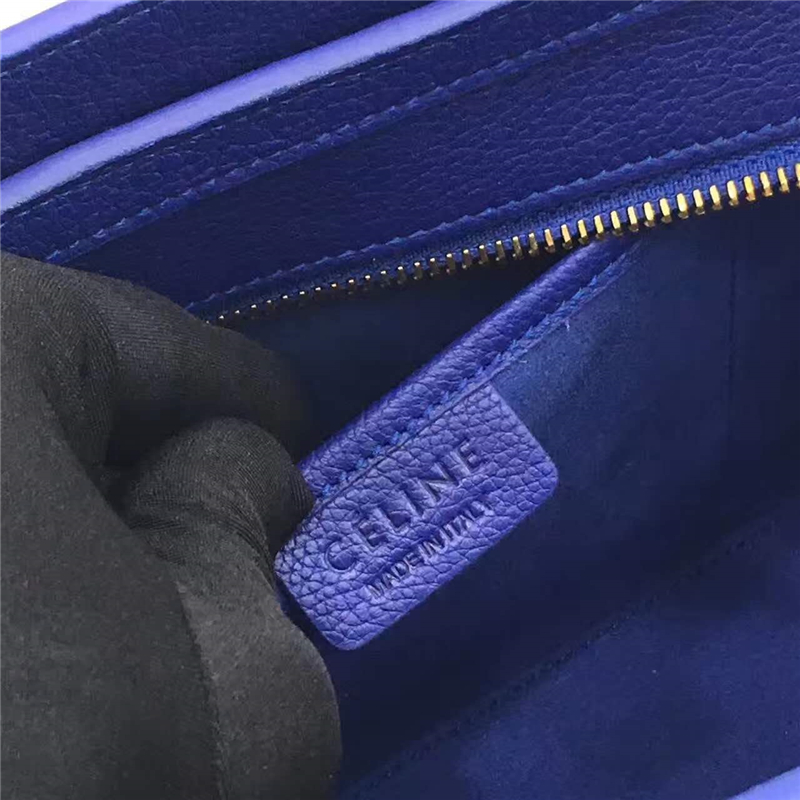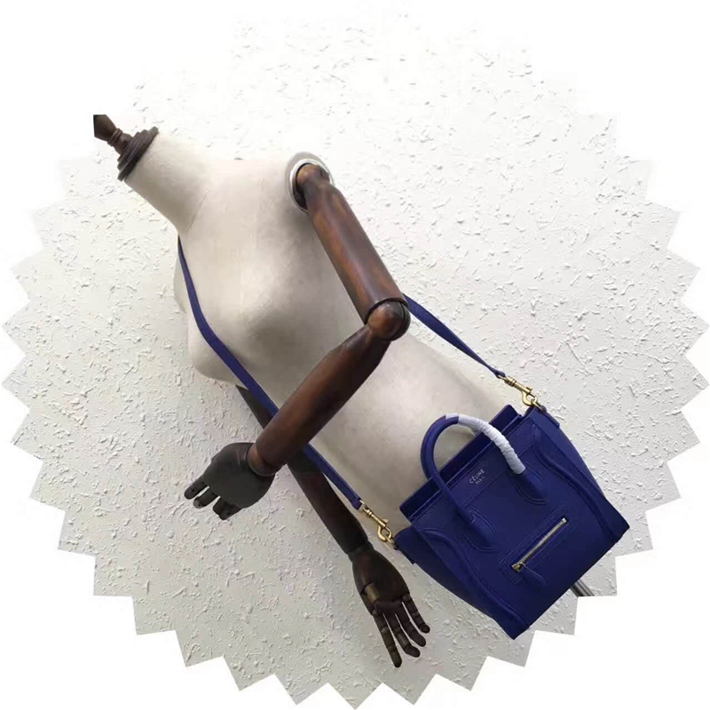 2017赛琳 celine笑脸包 �辶嘲�真皮 中号 头层牛皮 翅膀手提包 宝蓝色