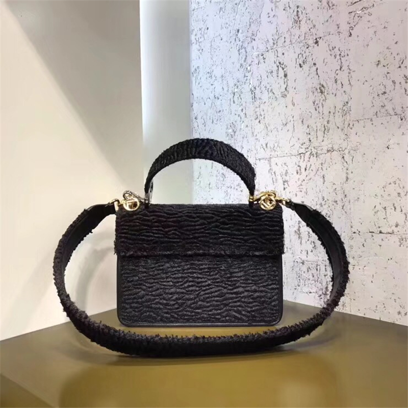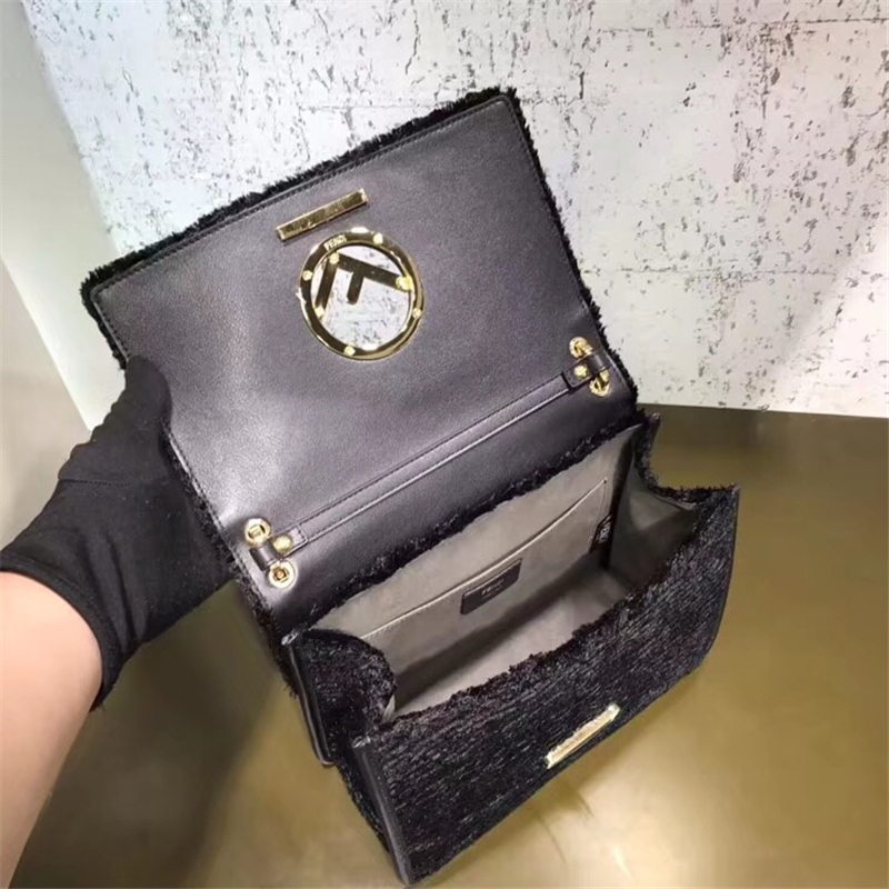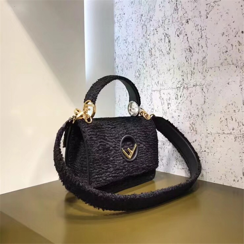 - 2813 FENDI芬迪 KAN I手袋 绒布制作 原版手提包 芬迪女包 黑色