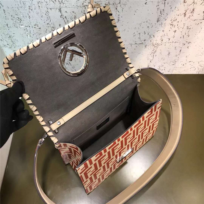 2821 Fendi 编织装饰穿绳 双F凸纹印花标志 翻盖手袋 红色
