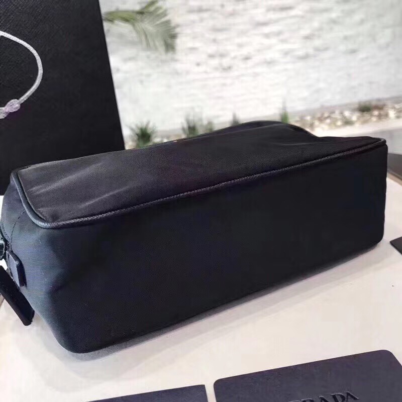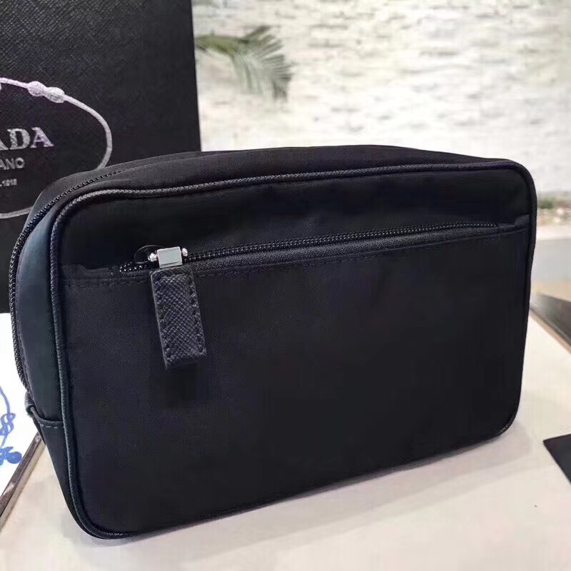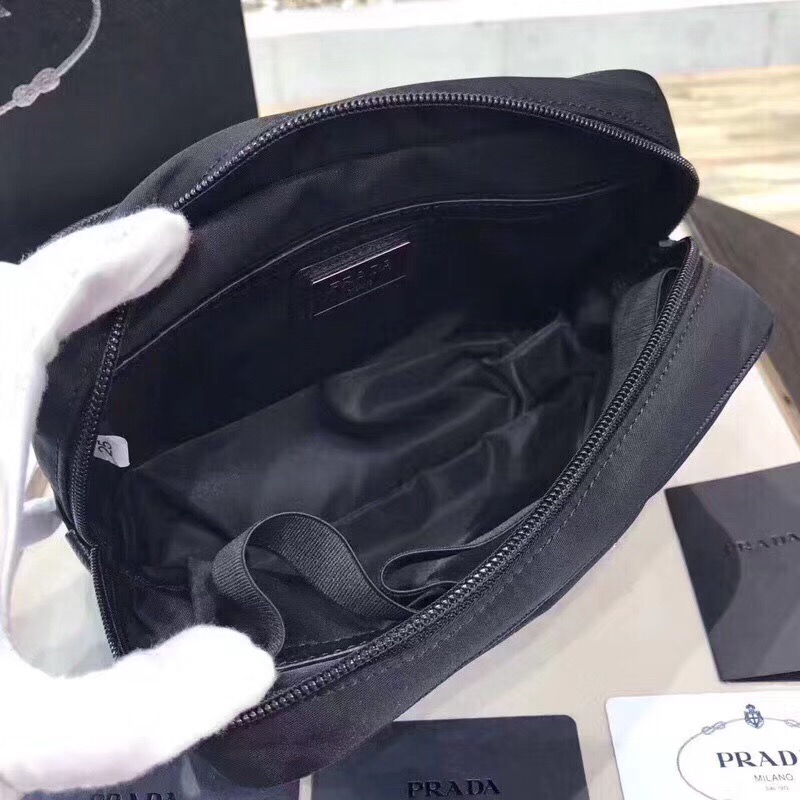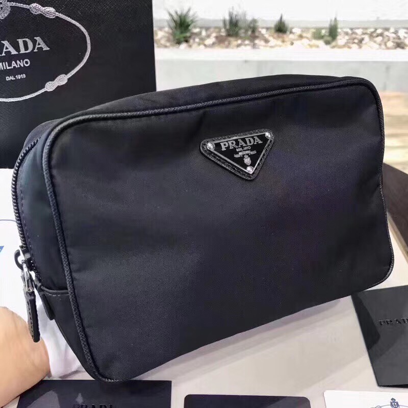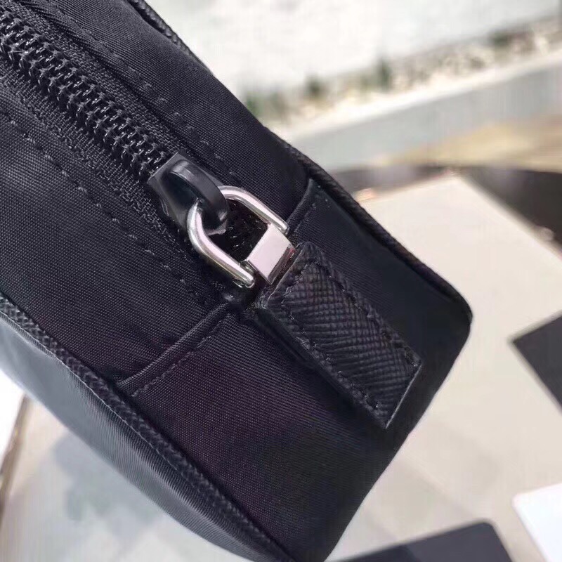 2NA006 Prada新款 防水尼龙面料配牛皮 普拉达手拿包 化妆包 黑色
