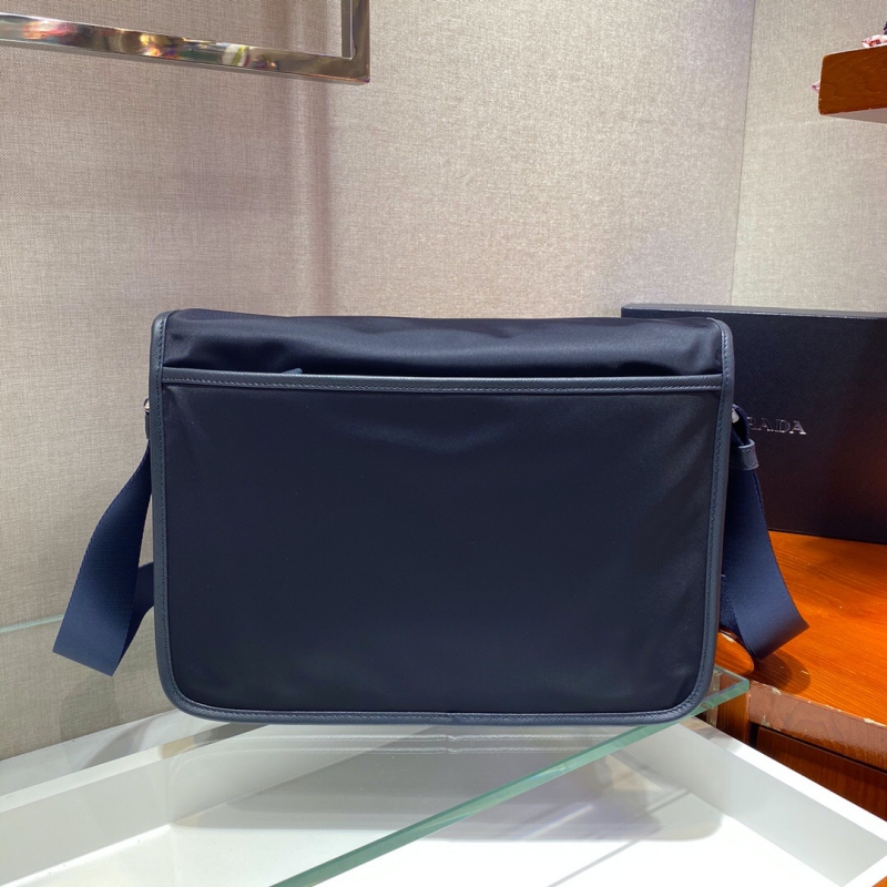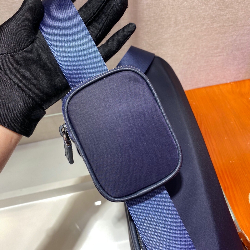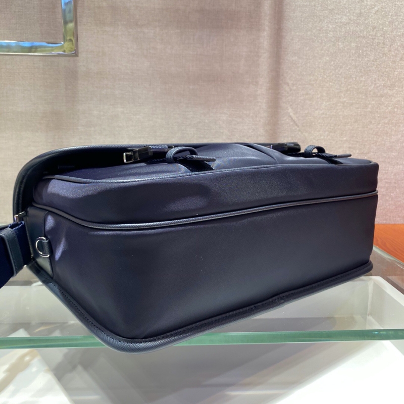 - 2VD768 Prada普拉达官网男包Saffiano 皮革饰边尼龙手袋 蓝色
