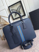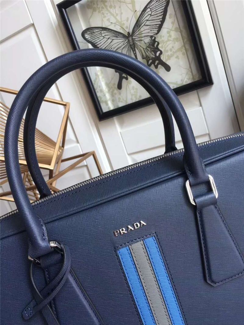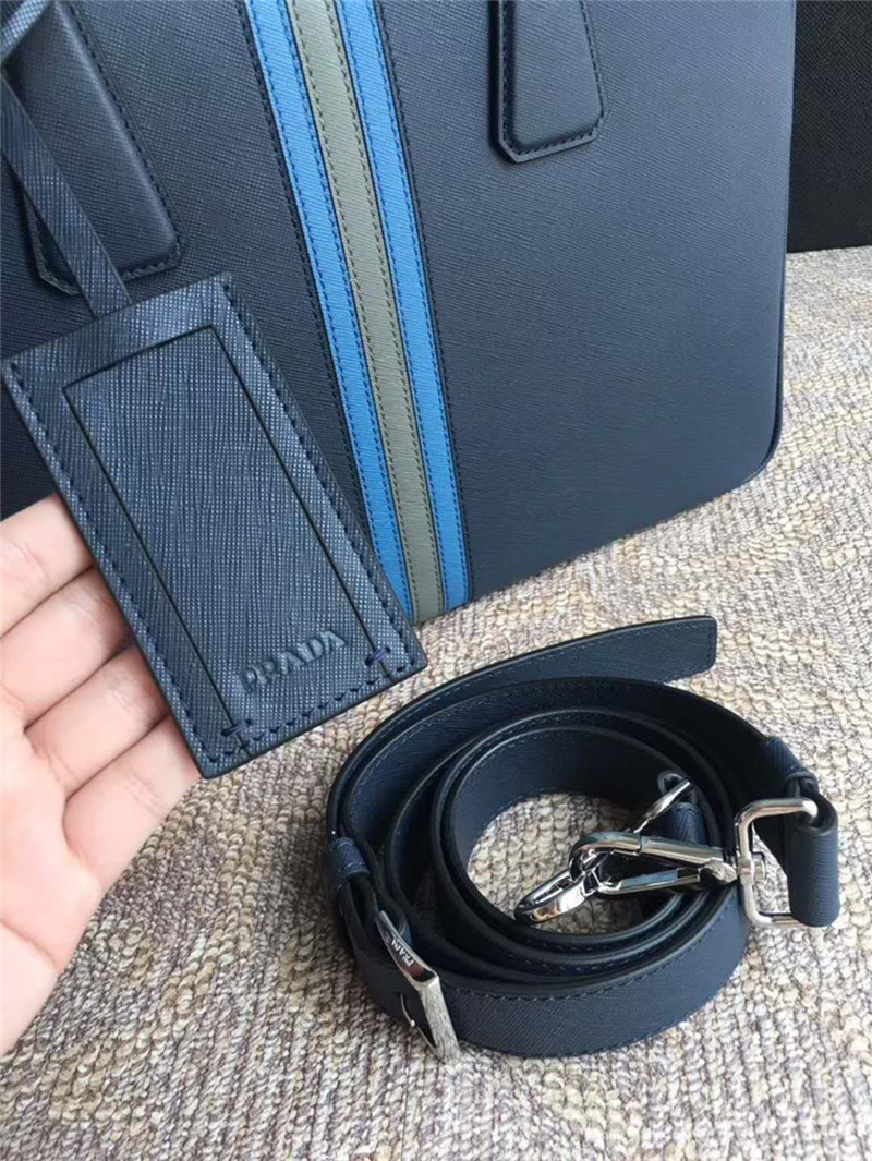 2VE0363R Prada普拉达男包 Prada男士公文包 十字纹手提包 蓝色