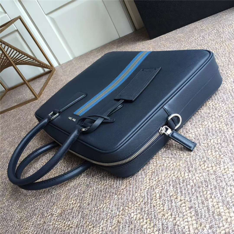 - 2VE0363R Prada普拉达男包 Prada男士公文包 十字纹手提包 蓝色
