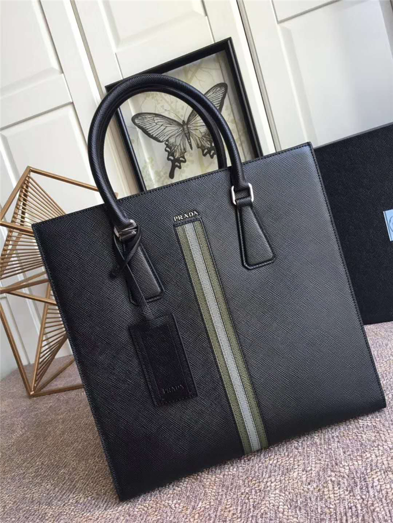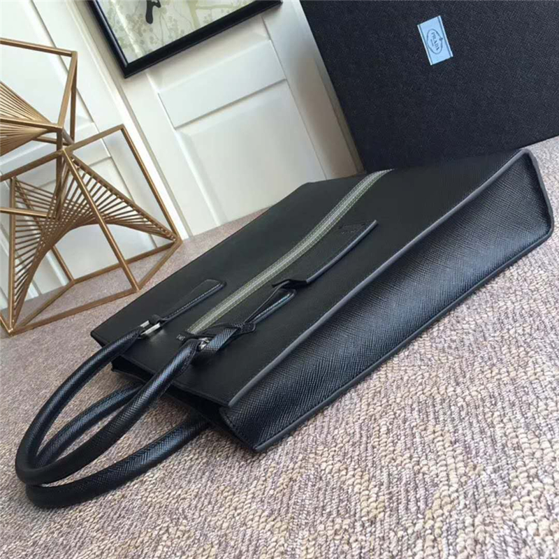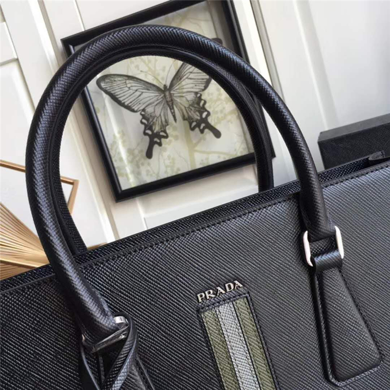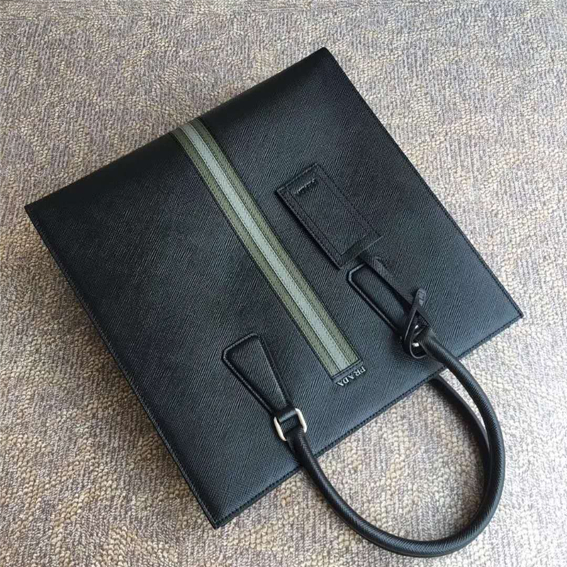 - 2VE083 Prada普拉达 2018新款 十字纹手提包 Prada男士公文包 黑色