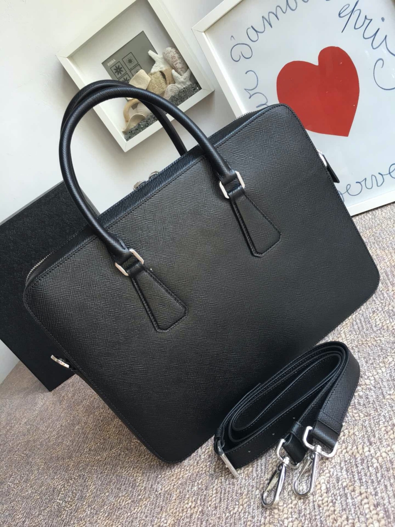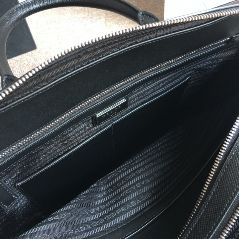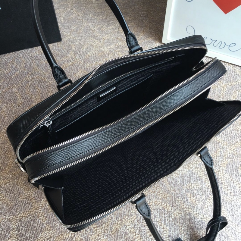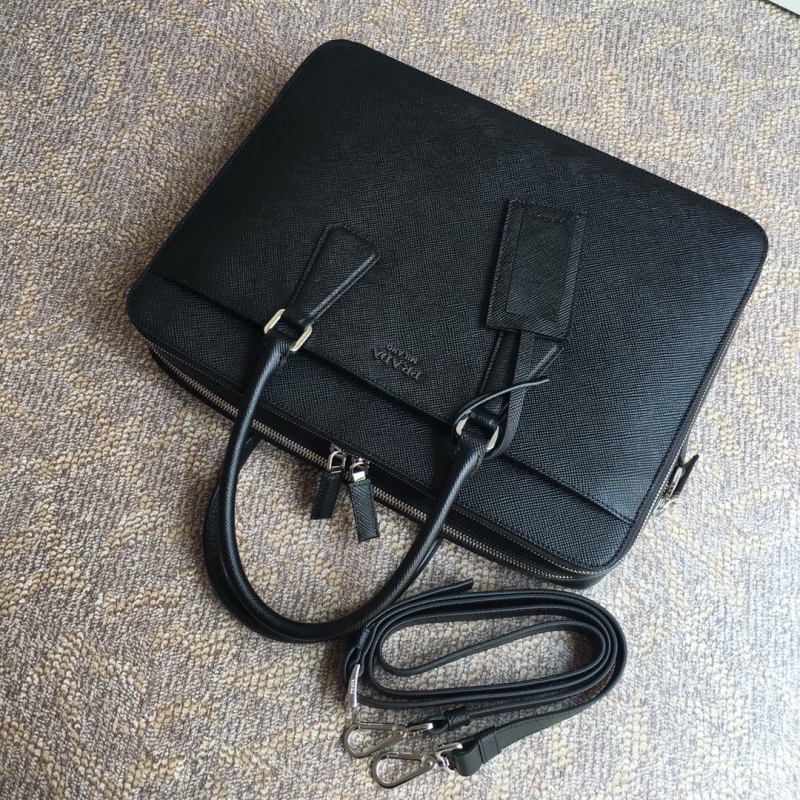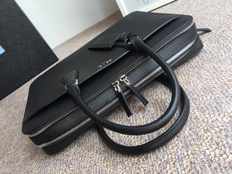 - 2VE366 Prada普拉达男包 Prada十字纹公文包电脑包 黑色