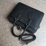 - 详细介绍:Saffiano Cuir皮质公文包 双手柄 可拆可调式皮肩带 抛光钢质金属配件 内部商标牌和外部金属商标 配拉链开合的功能性主隔层: 一个拉链袋、两个手机袋 一个正面配拉链开合的隔层 织物衬里 姓名牌
