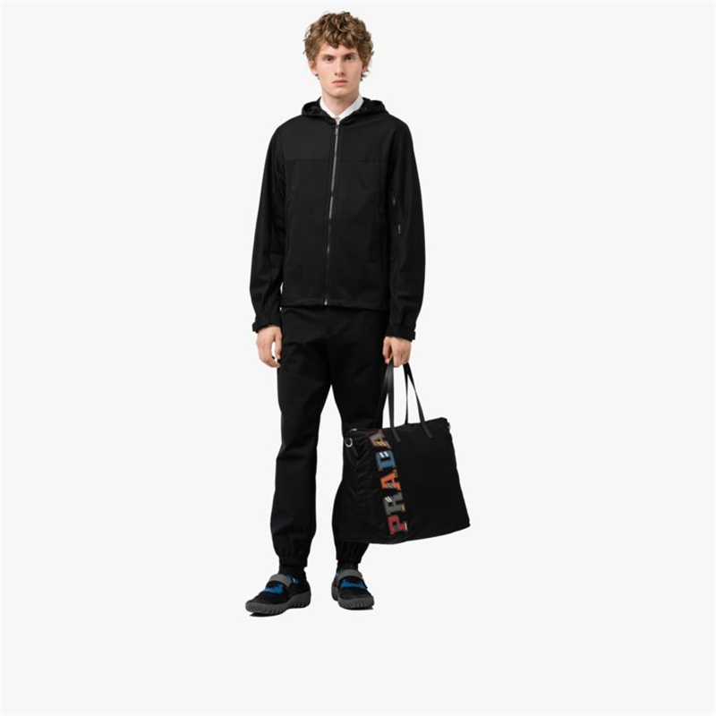 - 2VG024 Prada普拉达男包 皮革双手柄 字母图案 尼龙手提包 黑色