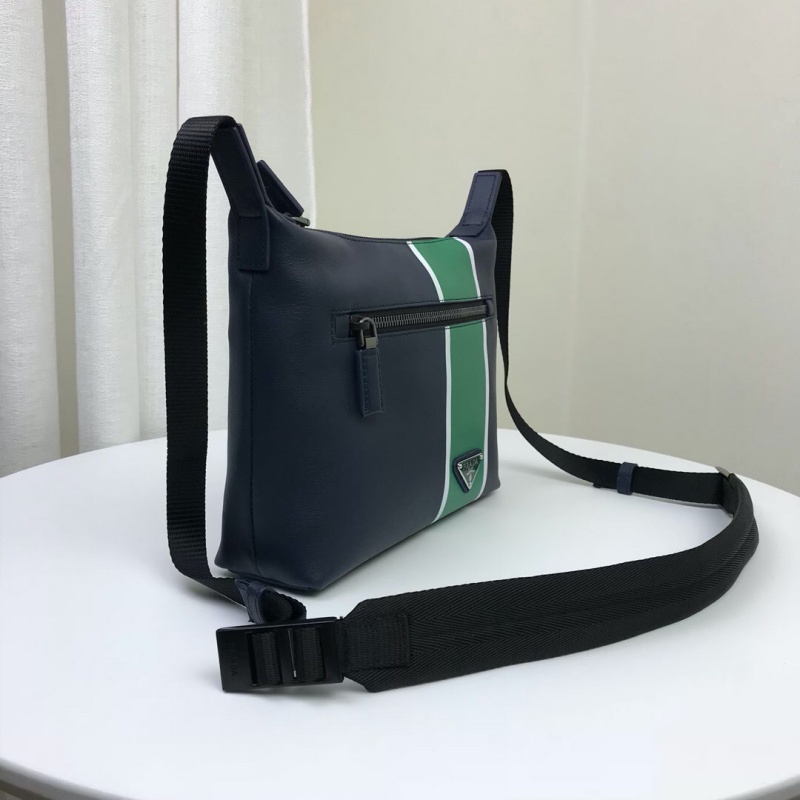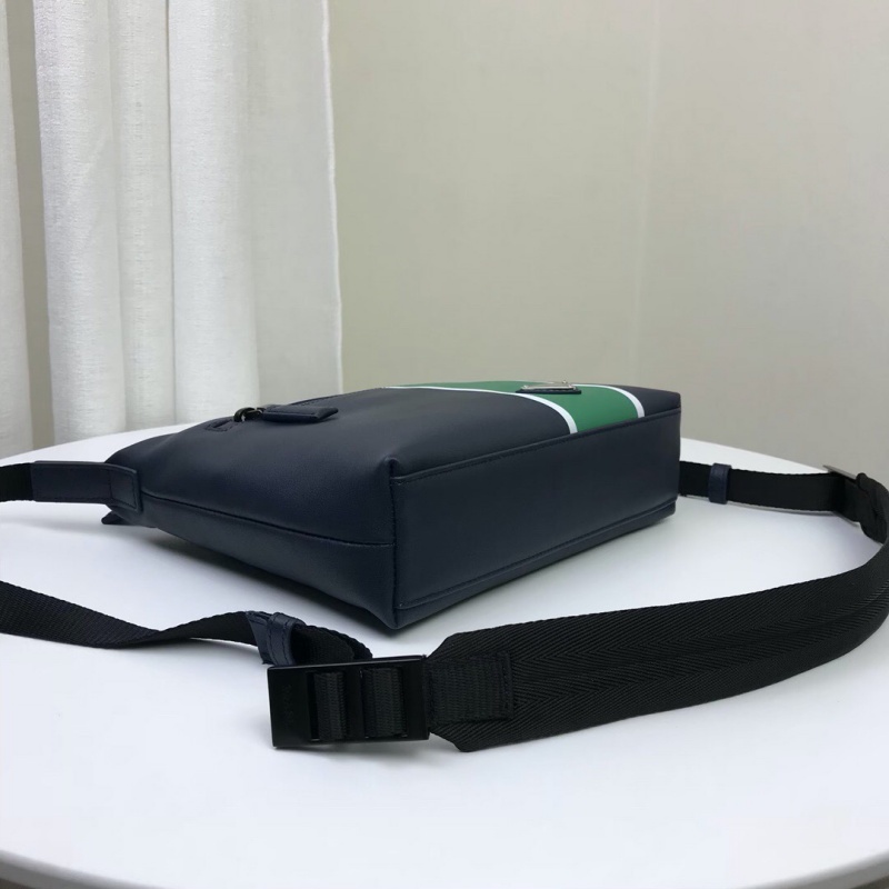 - 2VH078 Prada普拉达皮革斜挎包 Prada邮差包 黑配绿