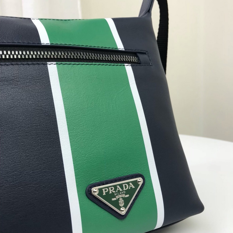 2VH078 Prada普拉达皮革斜挎包 Prada邮差包 黑配绿