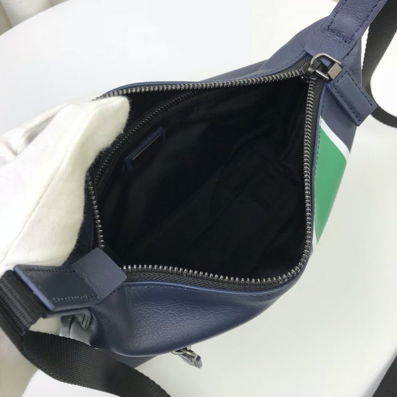 - 结构:小牛皮材质金属配件可调式编织织物肩带,带肩垫拉链式主隔层正面拉链袋包身缝有拉链袋两个内部尼龙手机袋外部涂珐琅三角形金属徽标内部金属徽标铭牌