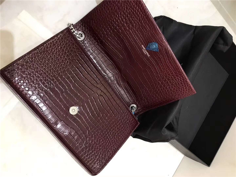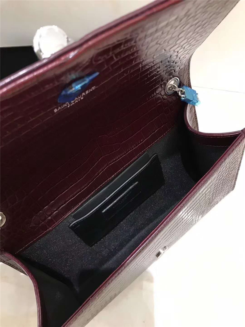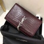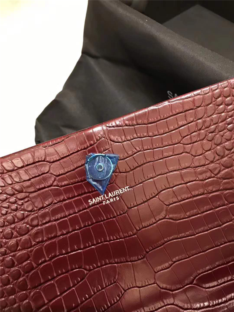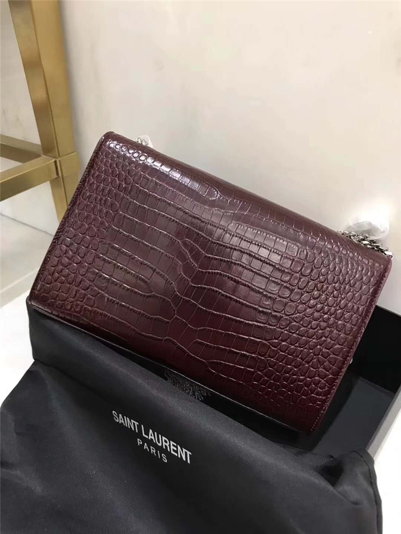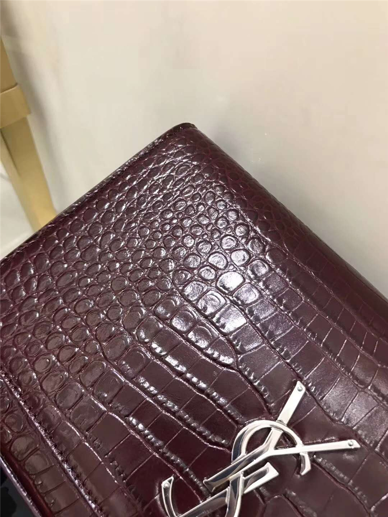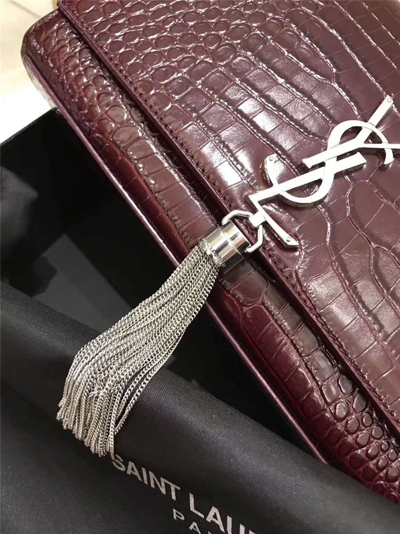 326076 YSL圣罗兰 专柜最新 细鳄鱼纹 流苏包 枣红银链