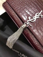 - 326076 YSL圣罗兰 专柜最新 细鳄鱼纹 流苏包 枣红银链