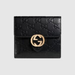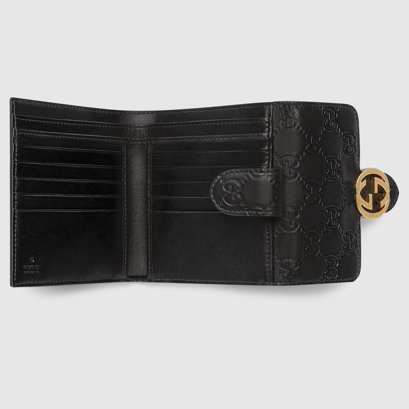 369676 Gucci标志 Gucci Signature系列 法式翻盖 短款皮夹 黑色