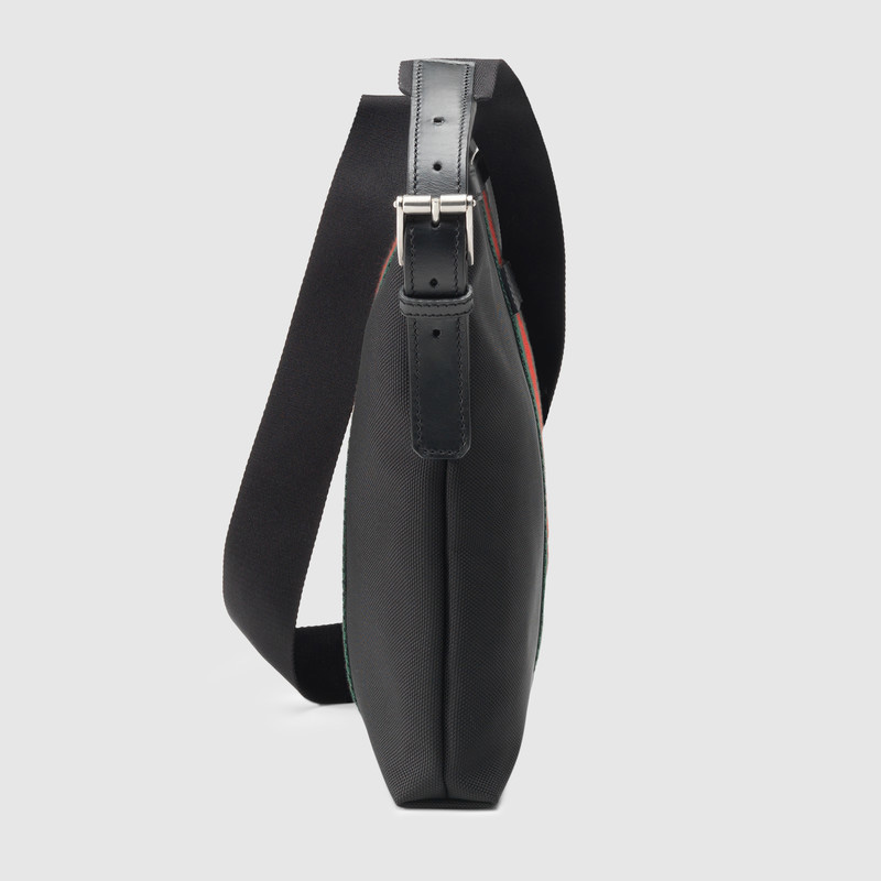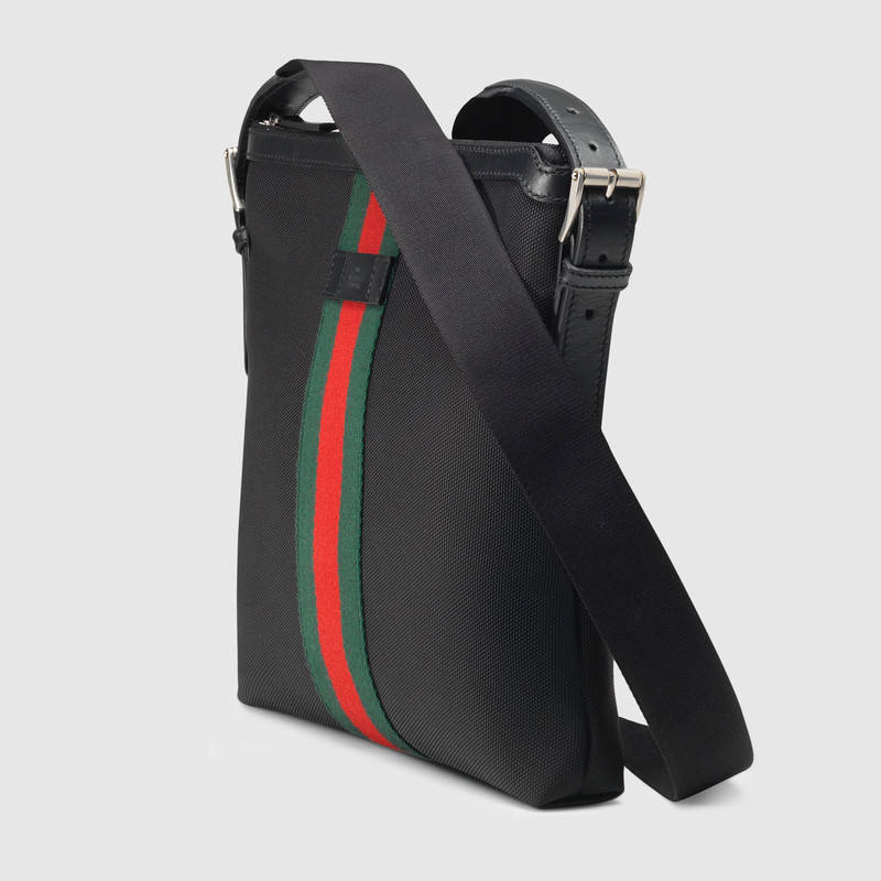 - 结构:黑色科技帆布黑色皮革滚边黑钯色金属配件绿色/红色/绿色经典织带细节皮革Gucci商标标签内设拉链口袋和智能手机口袋可调节织带肩带,长度54厘米顶部拉链尼龙衬里