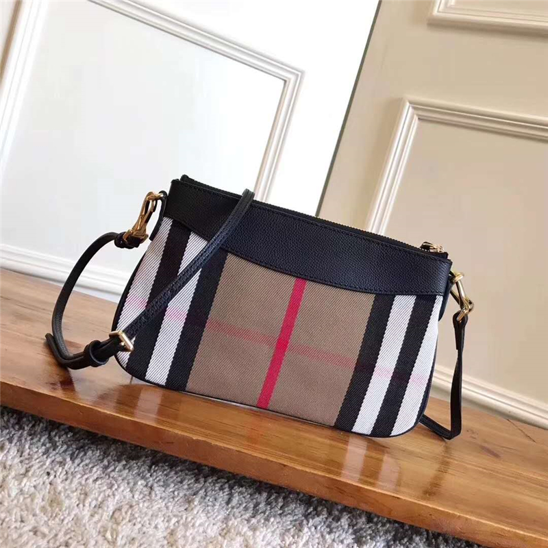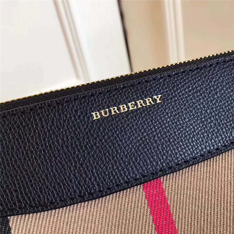 39753761 巴宝莉 House 格纹拼皮革 手拿包肩包 黑色
