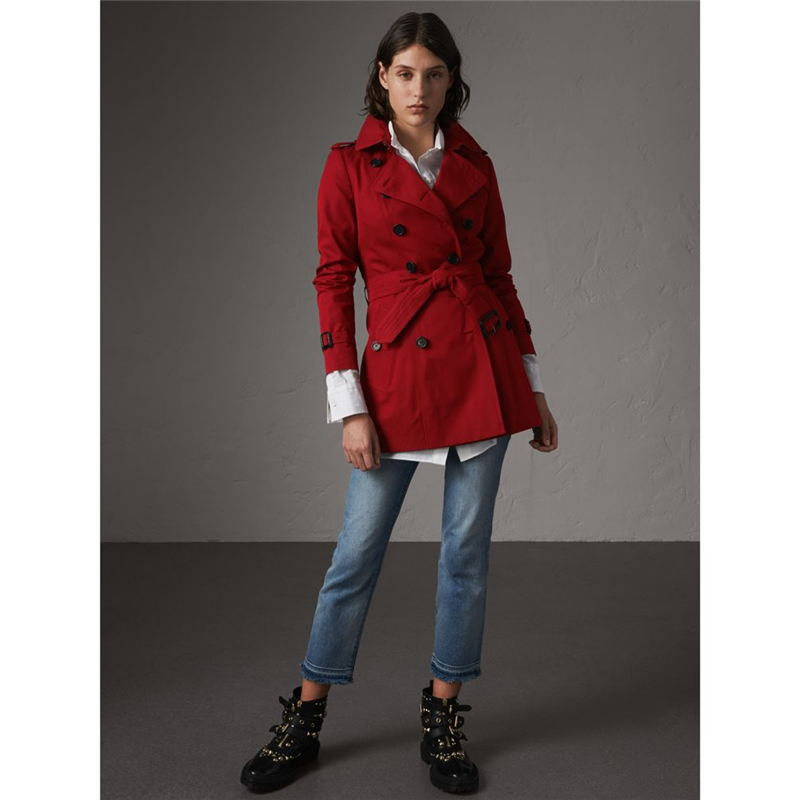 - 40133091 Burberry 巴宝莉 切尔西版型 女士短款 Trench 风衣 缤纷红色