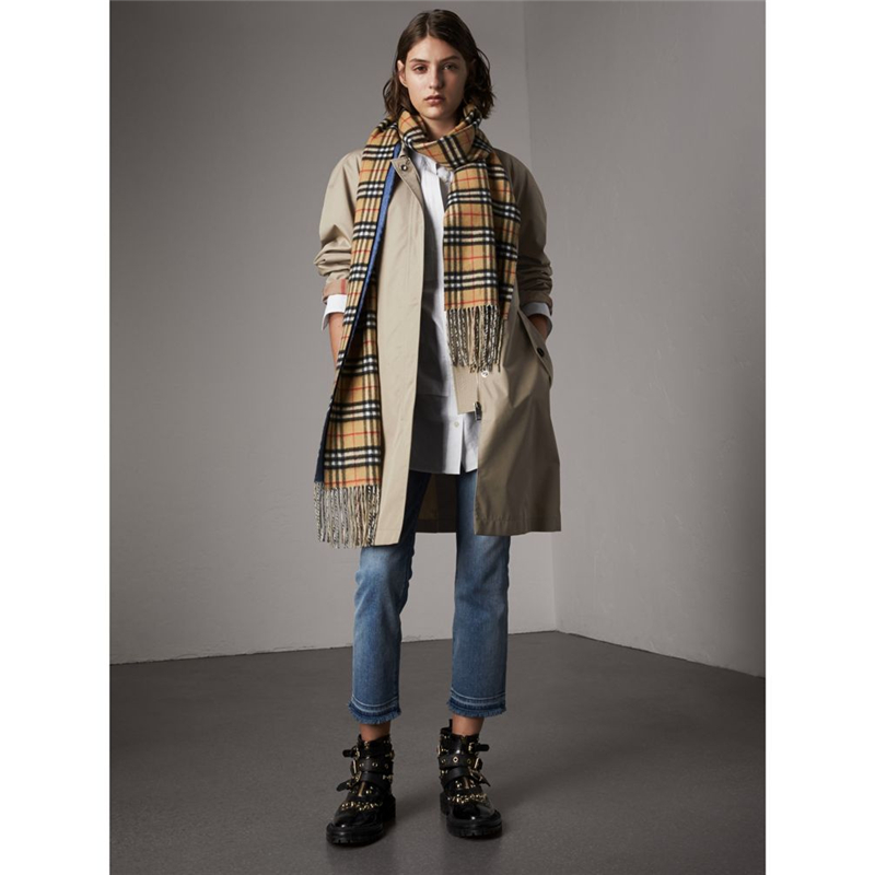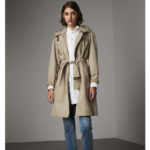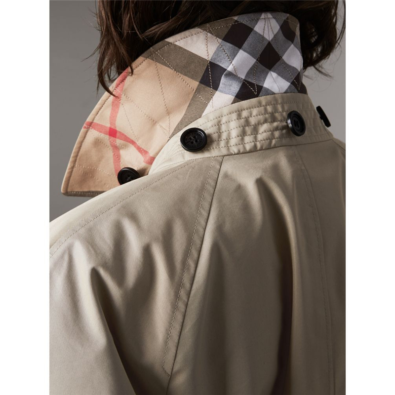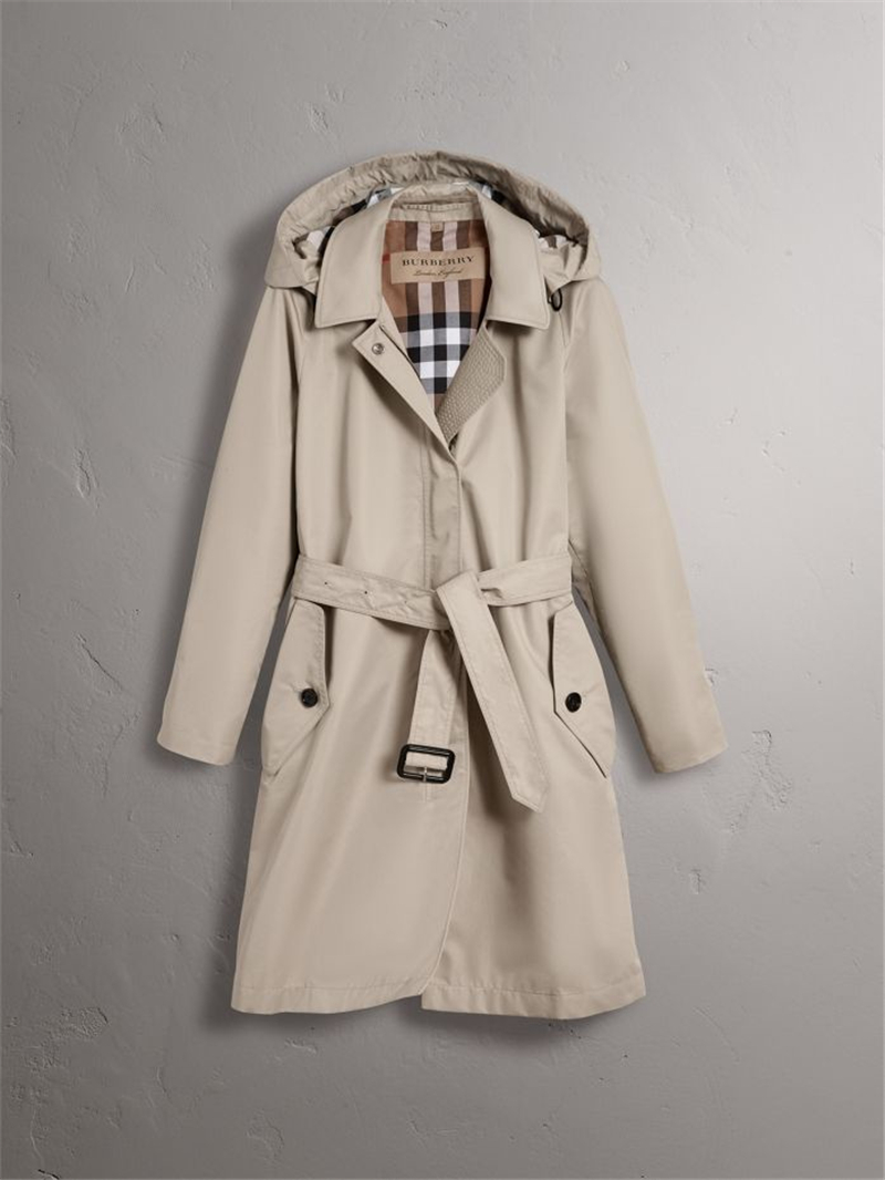 40611381 巴宝莉 棉质混纺 轻便大衣 女士中长款风衣 含可拆式连帽 石色