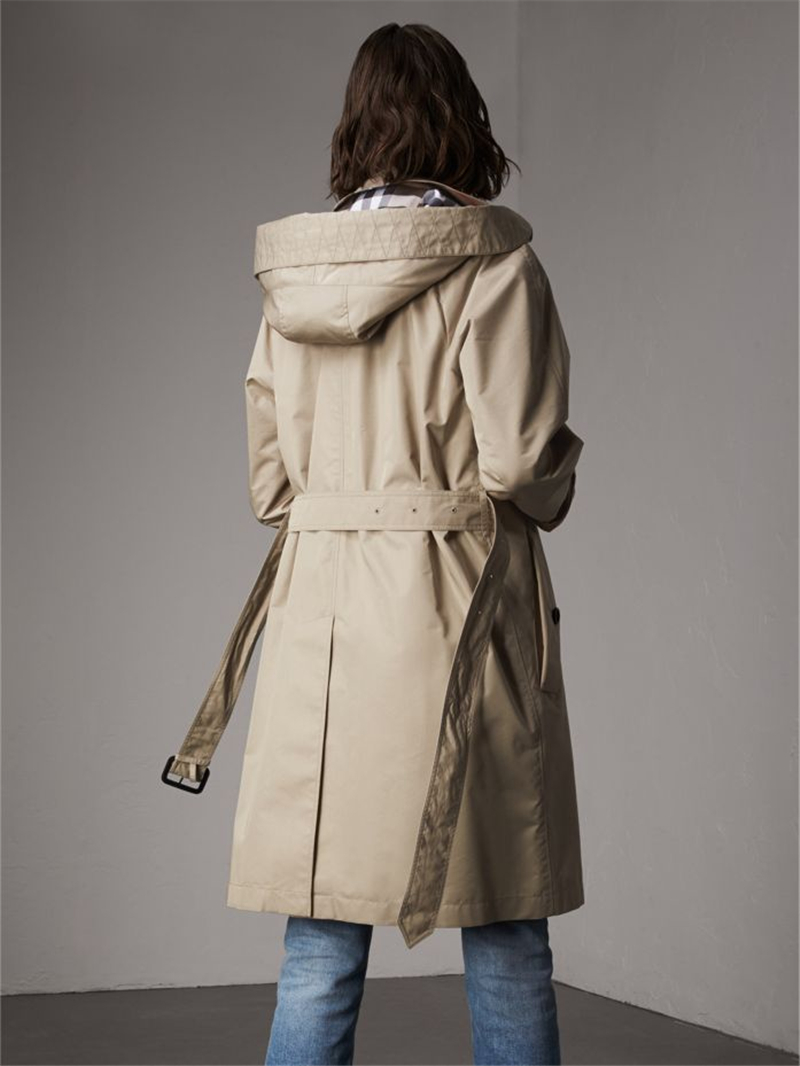 - 40611381 巴宝莉 棉质混纺 轻便大衣 女士中长款风衣 含可拆式连帽 石色