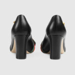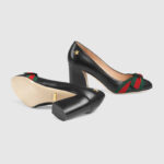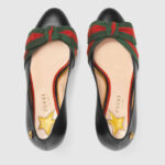 • 432044 GUCCI 铆钉 罗缎织带 皮革 尖头浅口鞋 黑色