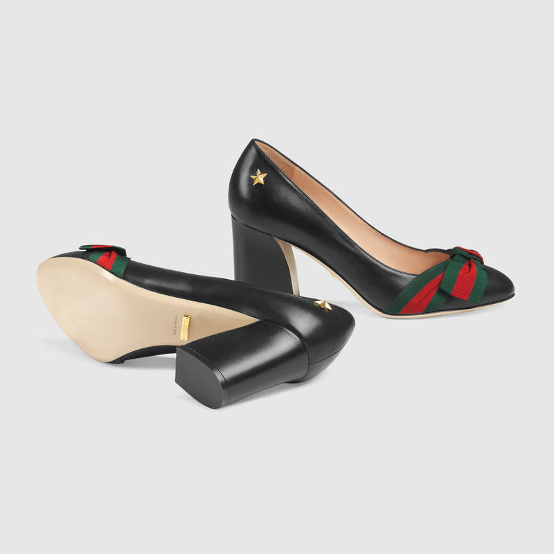 • 详细介绍:尖头高跟鞋,装饰罗缎Sylvie织带装饰蝴蝶结,缠绕在鞋的正面上。织带装饰依旧是每个全新系列中至关重要的组成部分,继续为Gucci的稳固根基做出贡献。