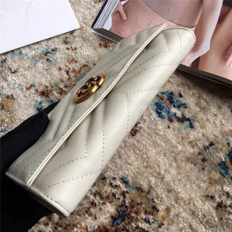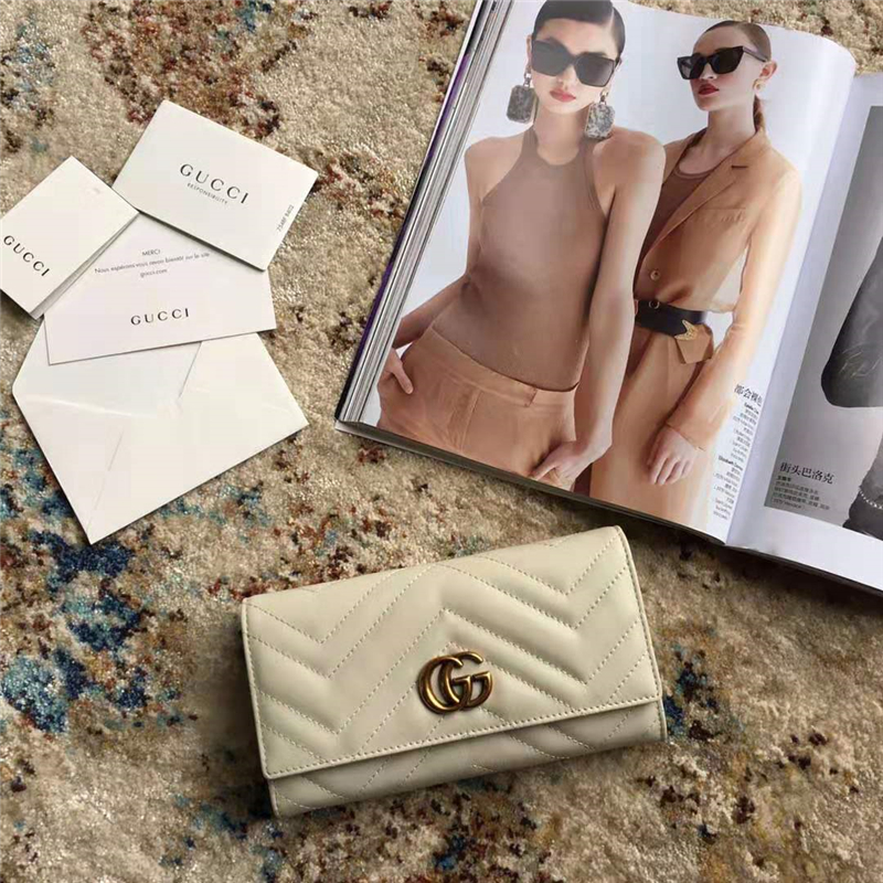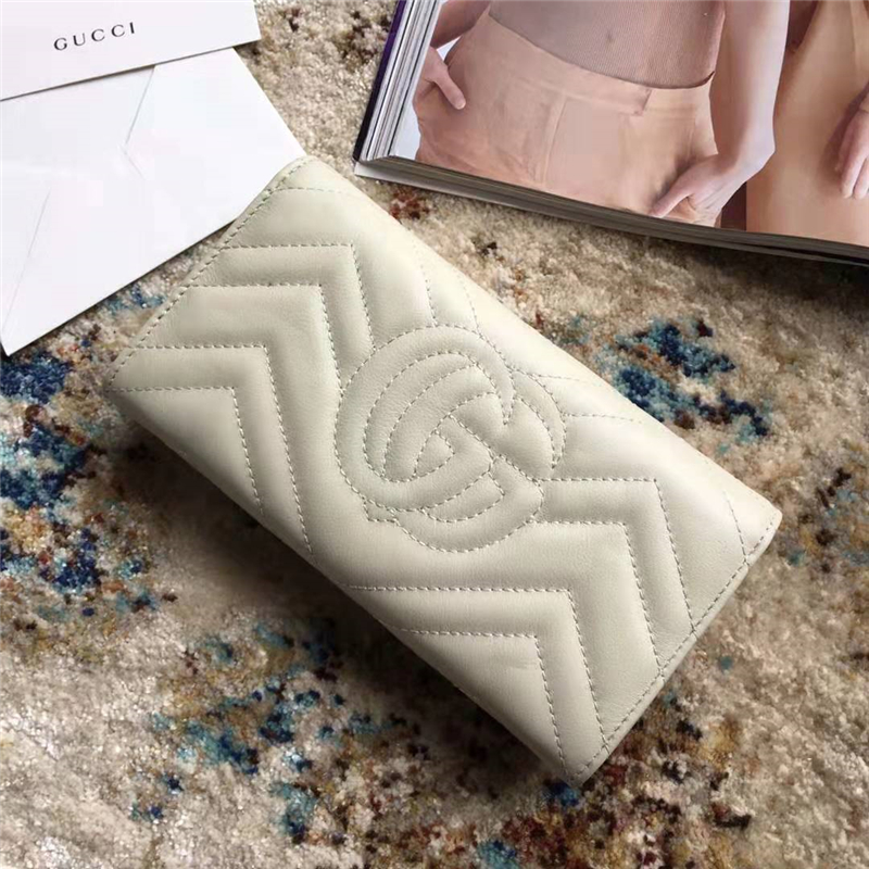 443436 GUCCI GG Marmont系列 绗缝皮革 双G 长款皮夹 白色
