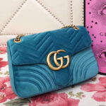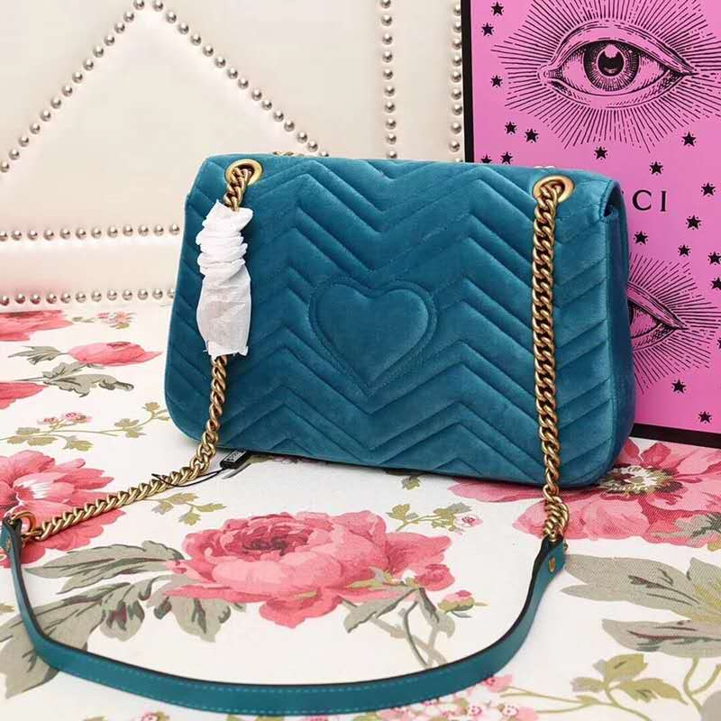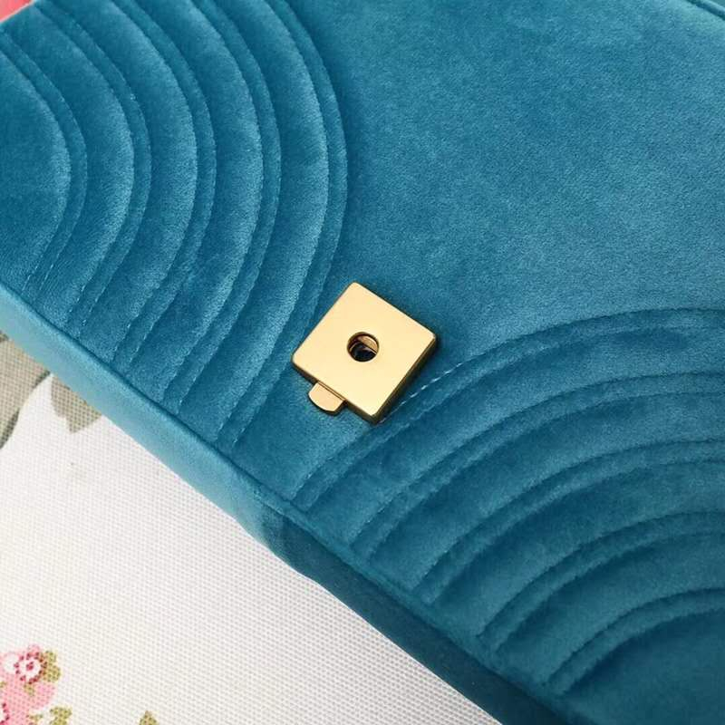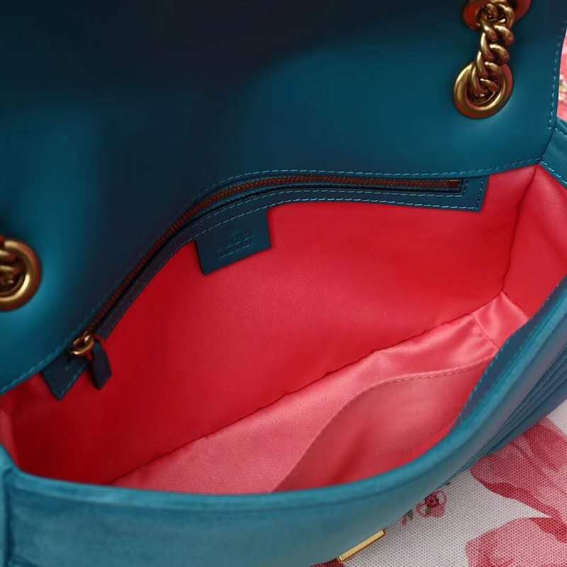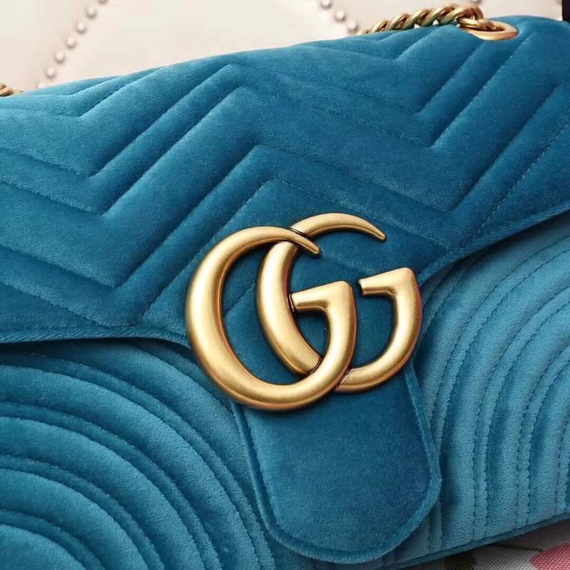 - 443496 Gucci女包 GG Marmont系列 天鹅绒 大号 古驰链条包 Gucci斜挎包 湖蓝色