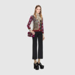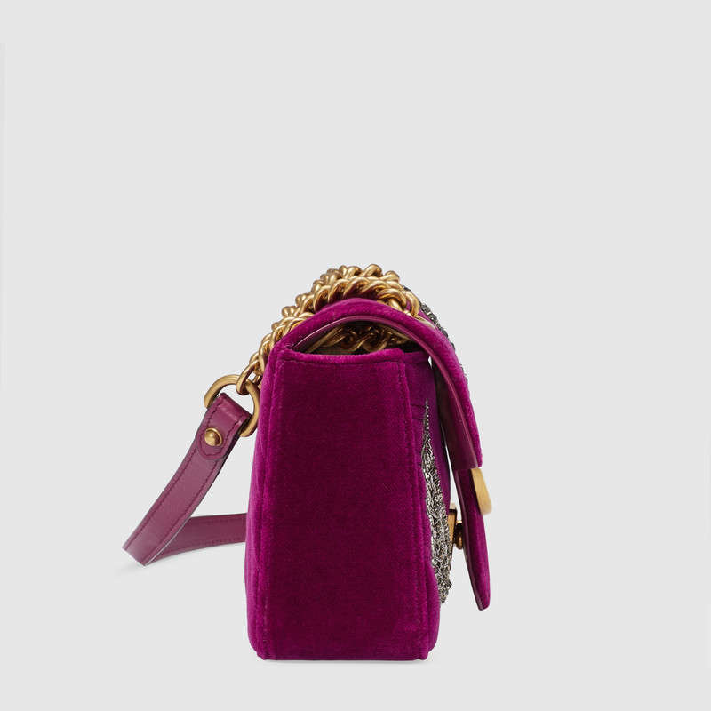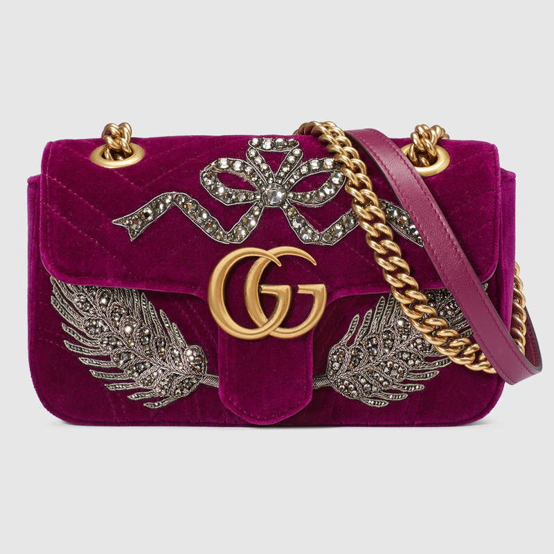 446744 GUCCI GG Marmont系列 刺绣 人形花纹天鹅绒 迷你手袋 酒红色