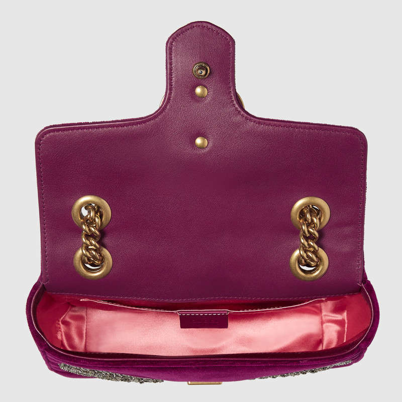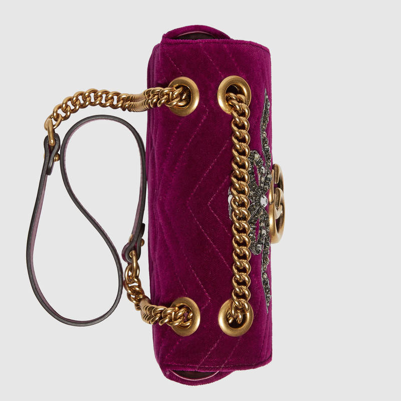 - 446744 GUCCI GG Marmont系列 刺绣 人形花纹天鹅绒 迷你手袋 酒红色