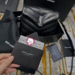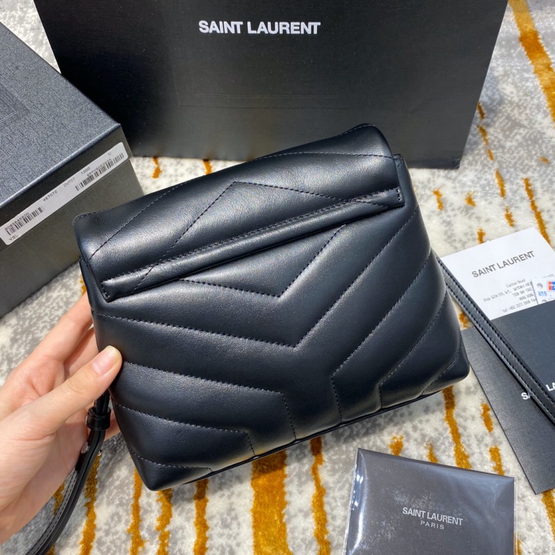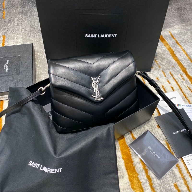 467072 YSL圣罗兰超小号LOULOU黑色“Y”字形提花真皮肩带包 黑色银扣