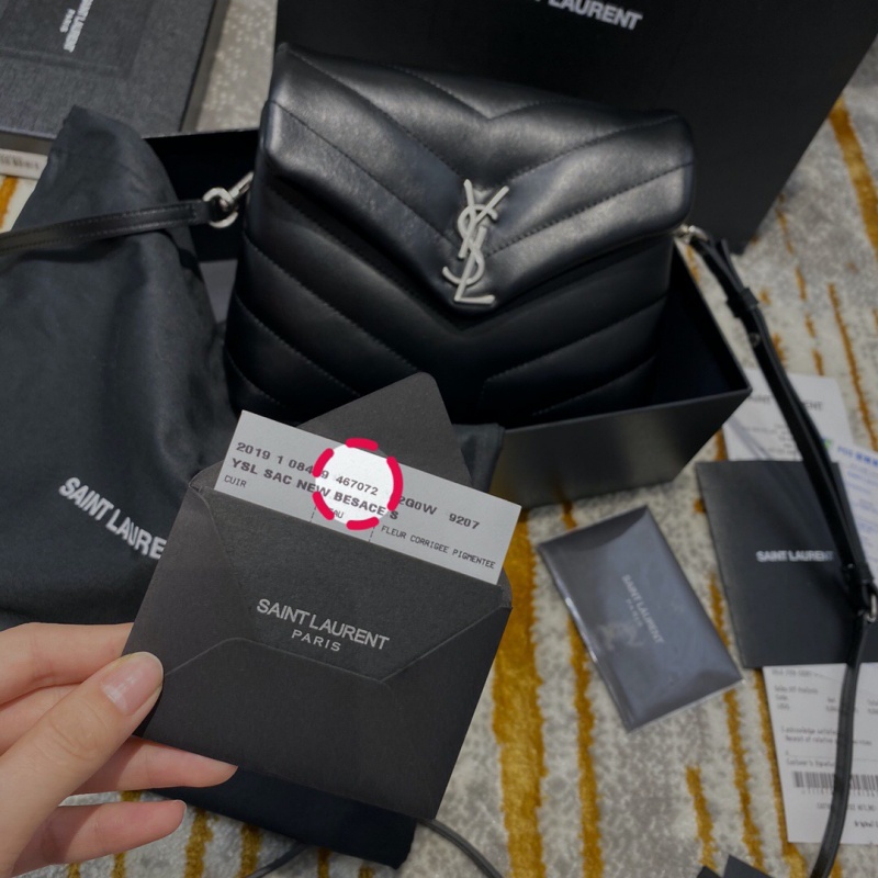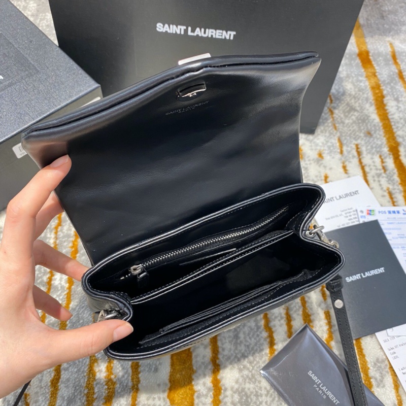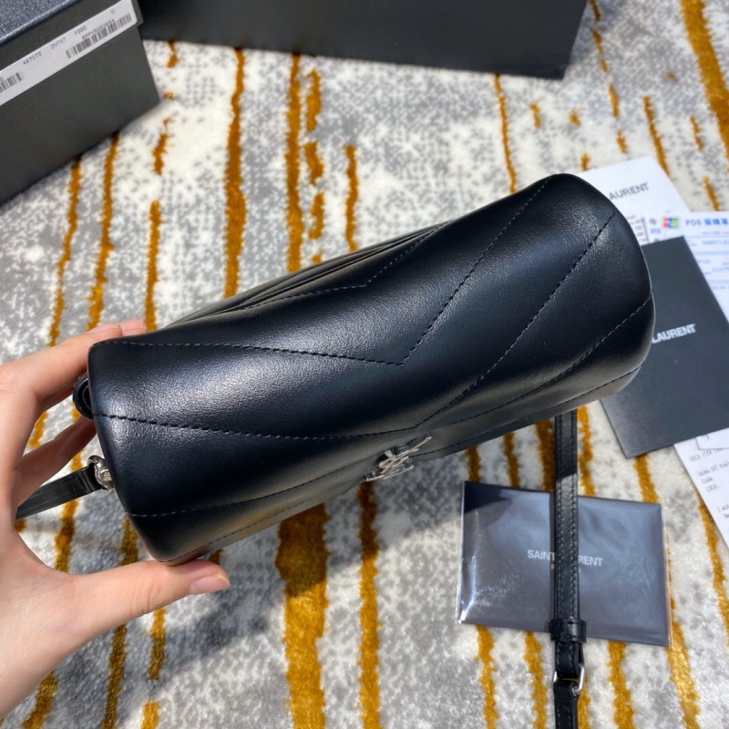 - 467072 YSL圣罗兰超小号LOULOU黑色“Y”字形提花真皮肩带包 黑色银扣