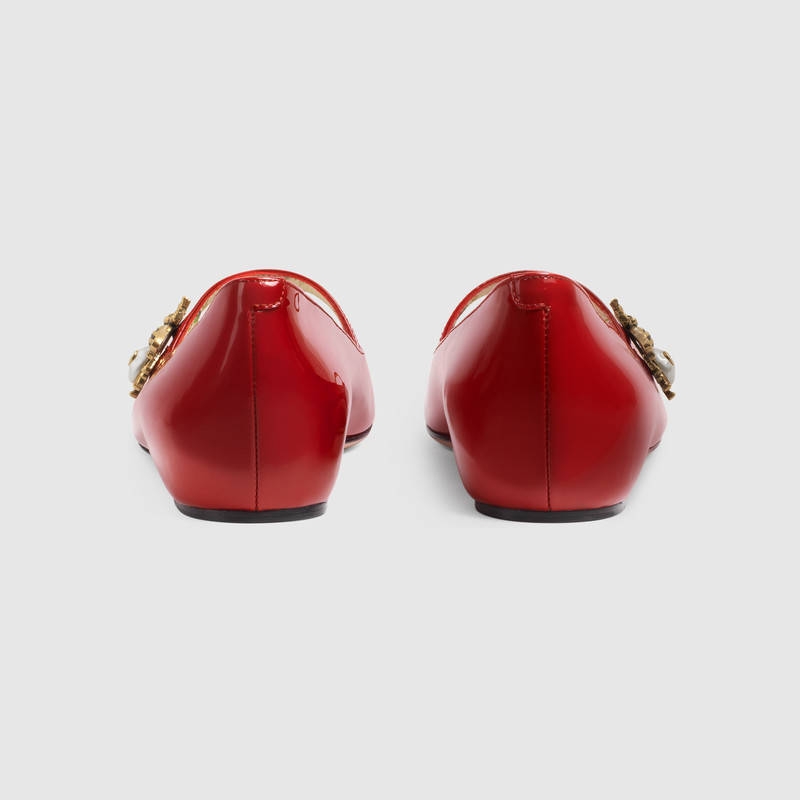 475832 GUCCI 蜜蜂装饰 漆皮 芭蕾舞鞋 芙蓉红