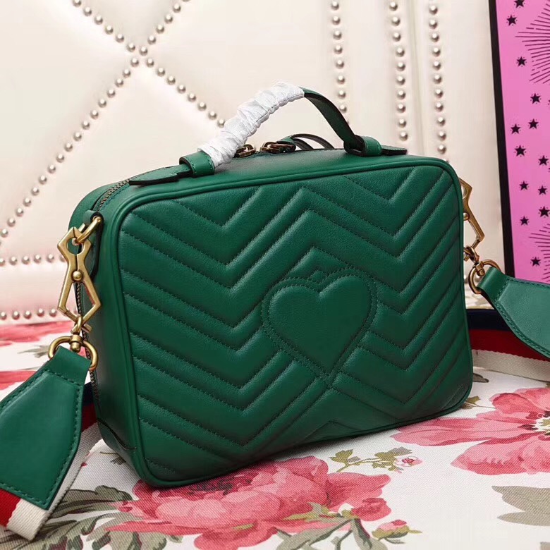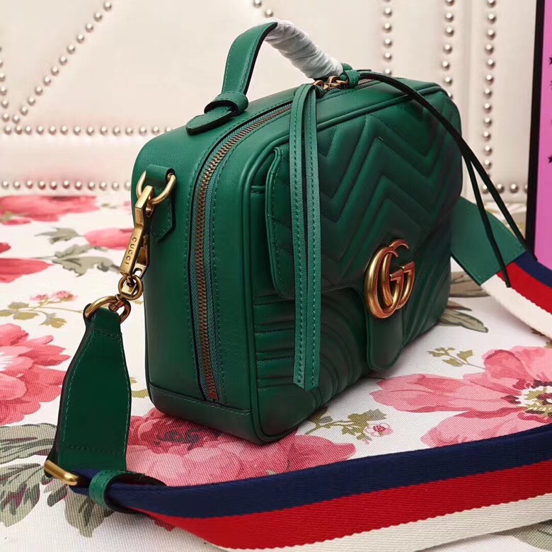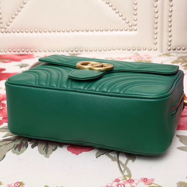 - 498100 Gucci GG Marmont系列 绗缝 翻盖 肩背包 绿色