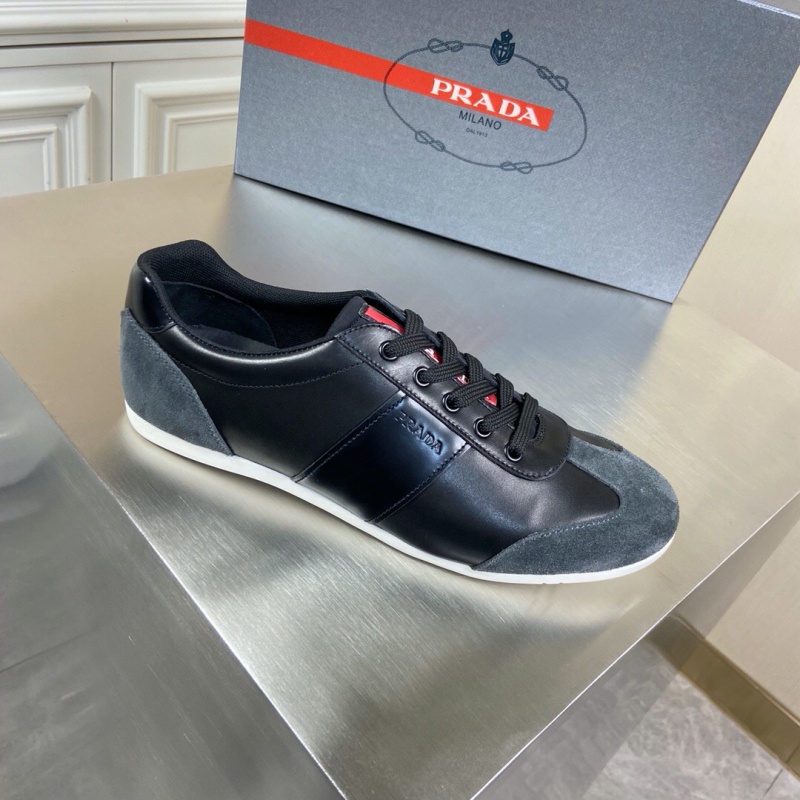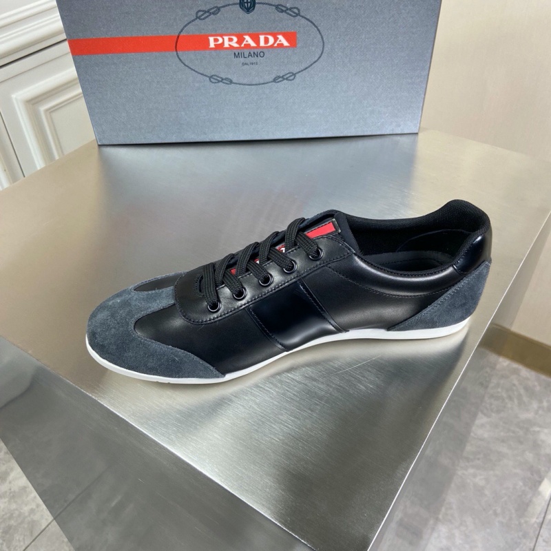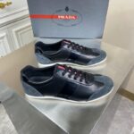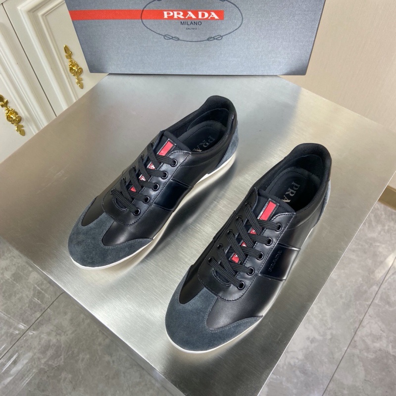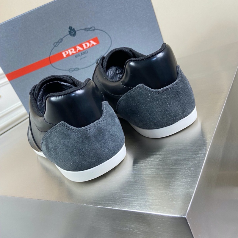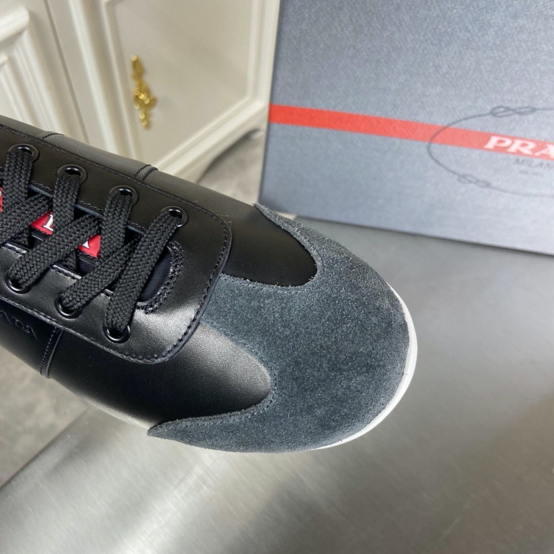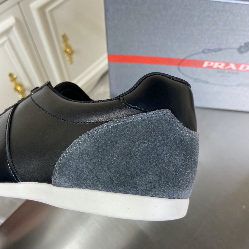 4E3463 Prada皮革和织物运动鞋 普拉达2020新款休闲运动鞋 黑色