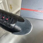 - 4E3463 Prada皮革和织物运动鞋 普拉达2020新款休闲运动鞋 黑色