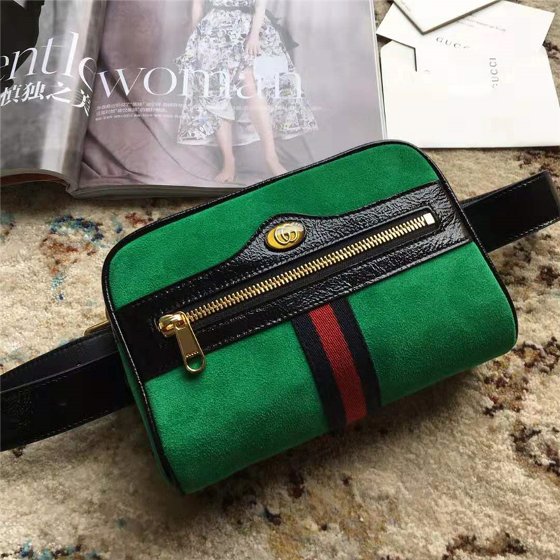 - 517076 Gucci Ophidia系列 经典款 麂皮 Gucci复古腰包 绿色