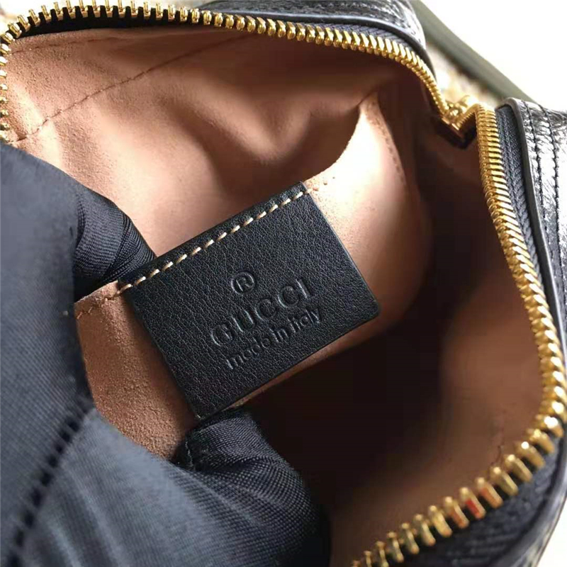 - 结构:麂皮质感超细纤维衬里,上方拉链扣,金色调配件,饰金属双G椭圆形珐琅细节,正面拉链口袋,拉链内袋,可调节腰带固定