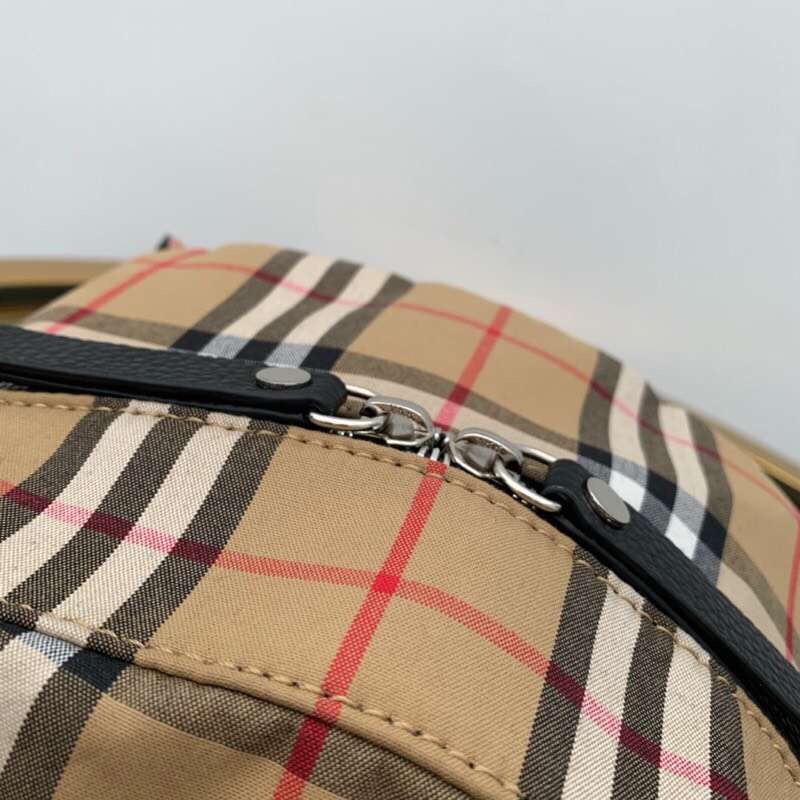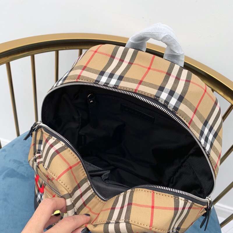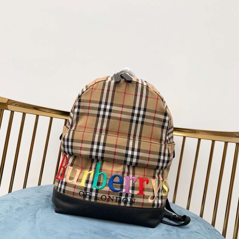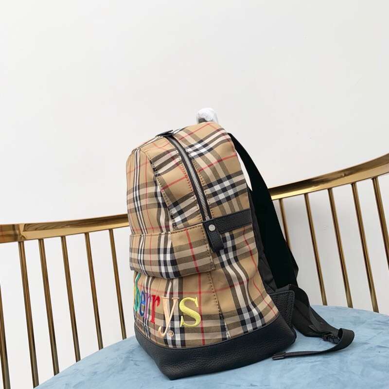 5366580 BURBERRY 新款格纹帆布 刺绣彩虹字母 双肩包 黑色